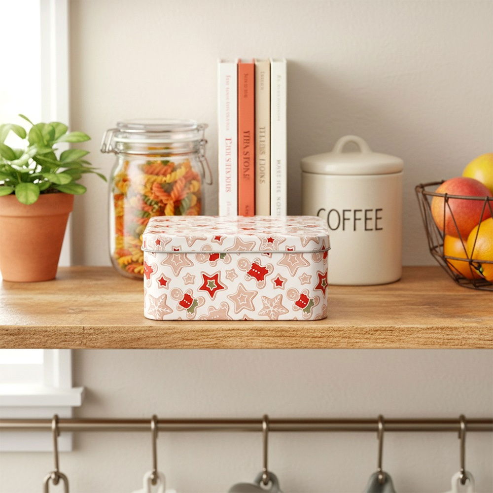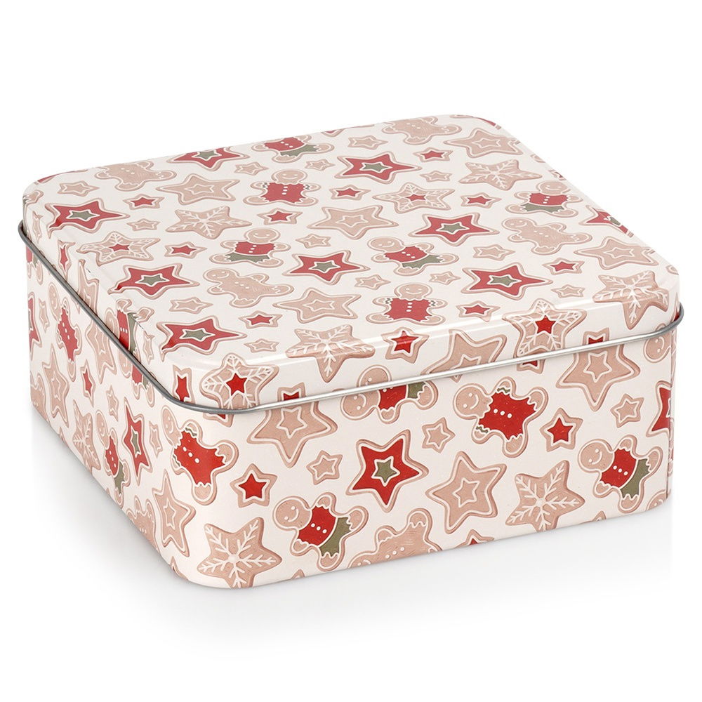 Pojemnik w formie puszki ze świątecznym motywem - Praktyczna puszka do przechowywania ciasteczek, słodyczy, herbaty oraz drobiazgów. Idealna do wykorzystania w kuchni, biurze lub jako ozdobne pudełko prezentowe. Pojemnik ma wymiary 15 x 15 x 6,5 cm.