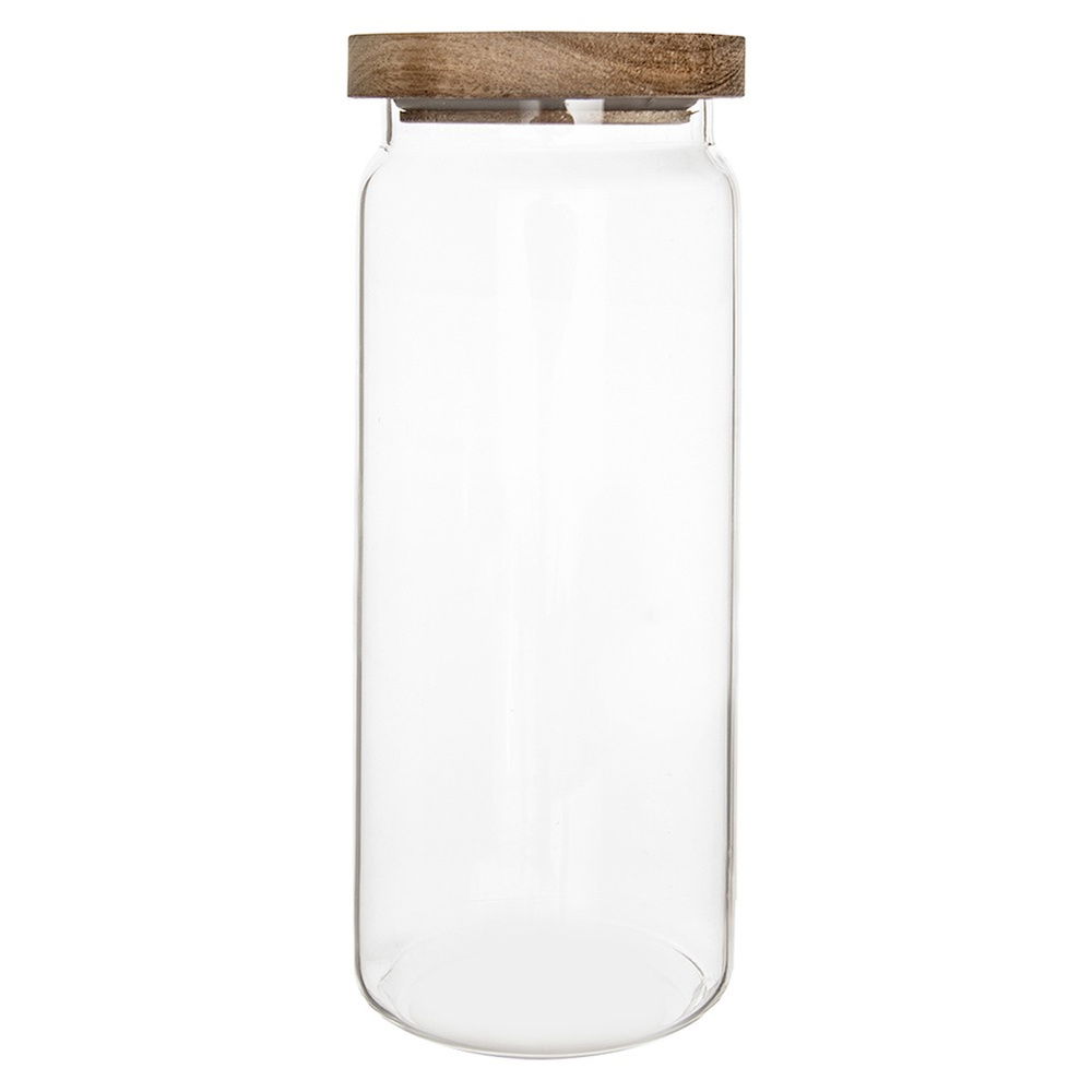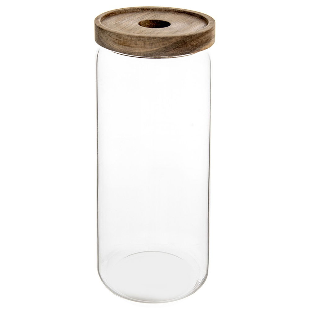 Pojemnik do przechowywania żywności z drewnianą pokrywą posiadającą uszczelkę. Nadaje się do przechowywania różnych produktów spożywczych. Znajdzie wiele zastosowań w kuchni. Dzięki szczelnej zakrętce z silikonową uszczelką przechowywane produkty utrzymają dłużej świeżość. Przezroczyste szkło pozwoli nam w łatwy sposób sprawdzić zawartość pojemnika i w efektowny sposób wyeksponować ją. Przechowywanie produktów w pojemniku pozwoli na uporządkowanie przestrzeni kuchennej.