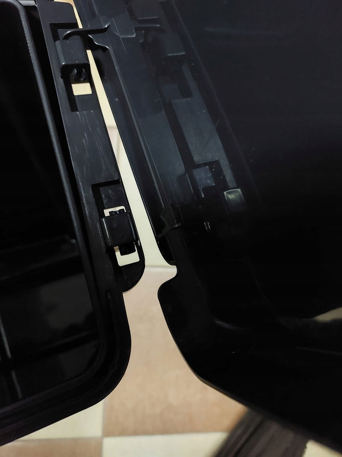 Produkt nowy z defektem, odłamany jeden zatrzask pokrywy, pokrywa otwiera się, przy zamknięciu pokrywa nie domyka się całkowicie.