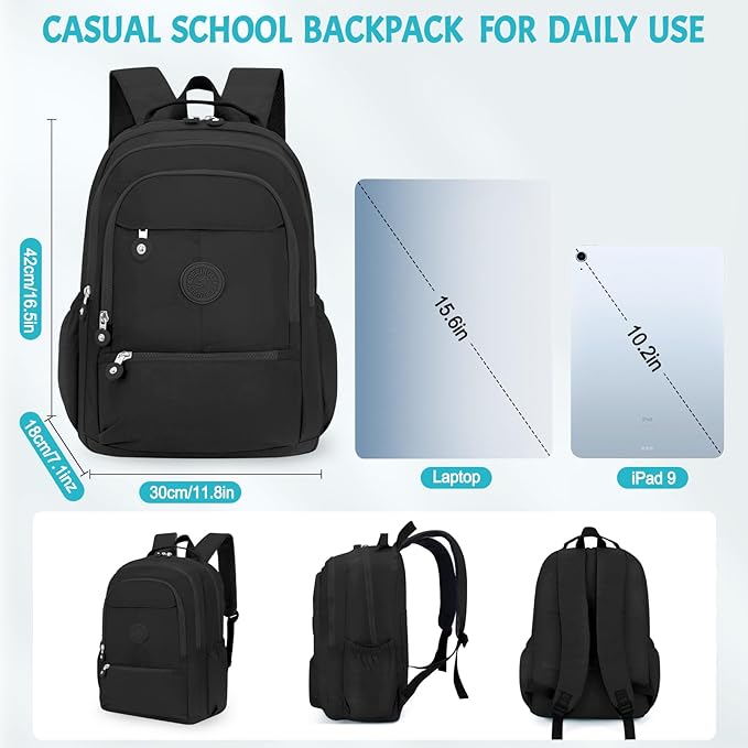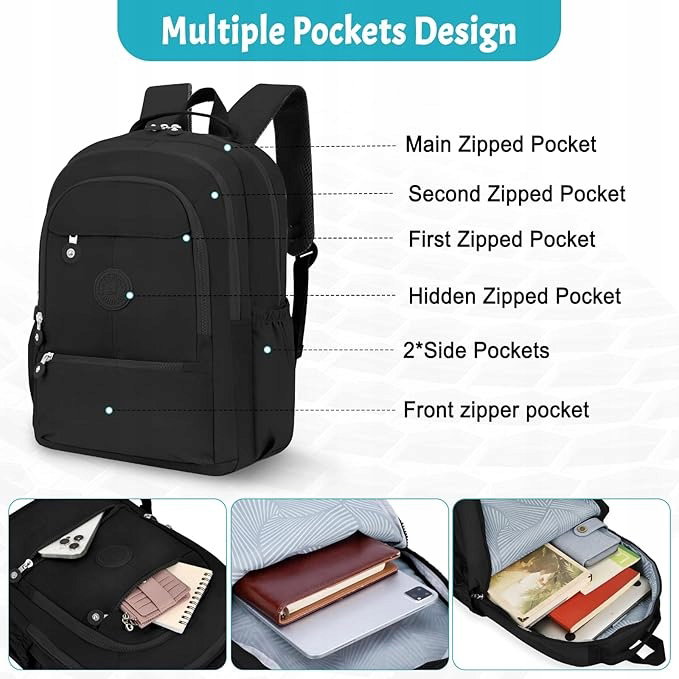 Pojemny Plecak Szkolny Podróżny Dużo kieszeni Wodoodporny 15.6" Czarny