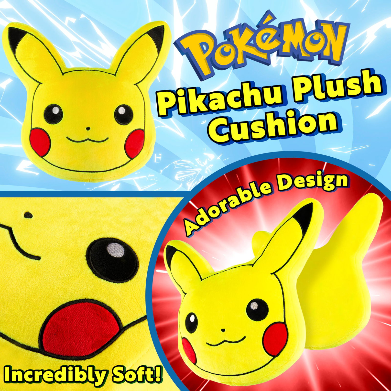 Pluszowa poduszka 3D Pikachu: odkryj cud Pokemon dzięki naszej poduszce 3D Pikachu na sofę lub łóżko! Nasza pluszowa poduszka Pikachu została starannie zaprojektowana, aby zapewnić najwyższy komfort, jakość i trwałość, a także rzuca się w oczy design 3D, który z pewnością zachwyci każdego małego fana. Wszystkie nasze akcesoria Pokemon są oficjalnie licencjonowanymi artykułami dla fanów i dlatego są świetnym pomysłem na prezent dla początkujących trenerów Pokemonów. Więcej informacji na zdjęciach.