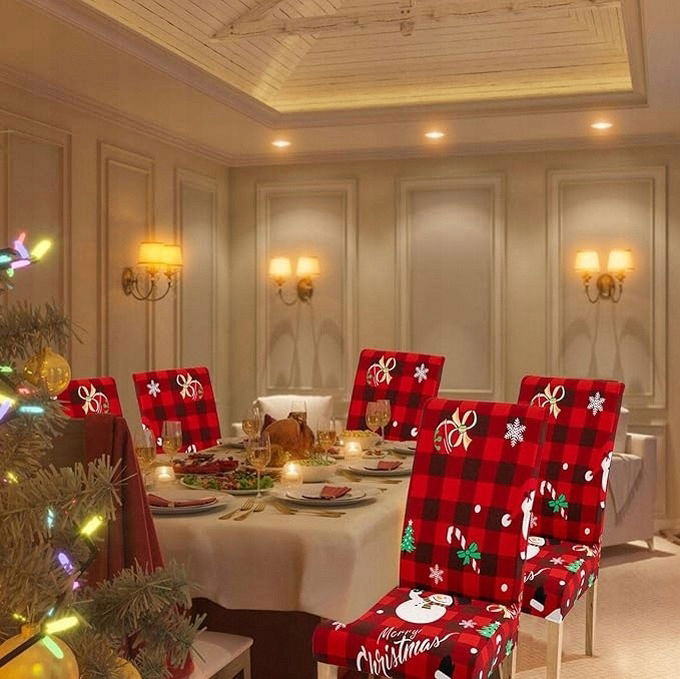 ▶️ POKROWCE ŚWIĄTECZNE NA KRZESŁA KOMPLET 6 SZTUK DEKORACJE OZDOBY NA ŚWIĘTA
