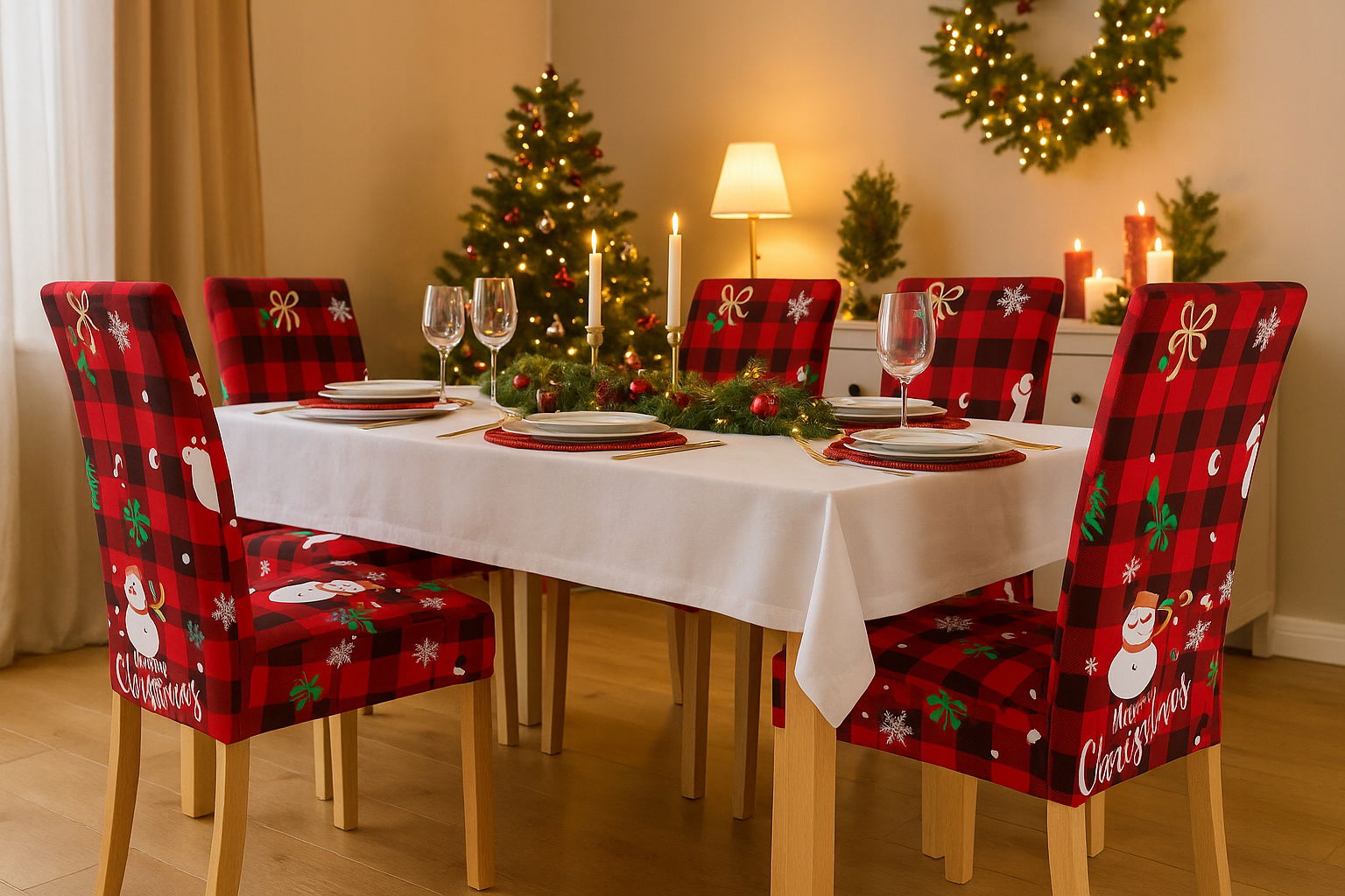 Zmień zwykłe krzesła w wyjątkową ozdobę bożonarodzeniowego stołu! Pokrowce wprowadzą do Twojego domu magię świąt, a jednocześnie ochronią krzesła przed plamami, sierścią i uszkodzeniami.