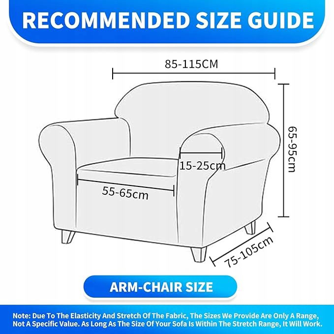 Super rozciągliwość: Elastyczne pokrowce na sofy CYCMACO są wykonane w 96% z poliestru i 4% ze spandeksu, więc pokrowce są super rozciągliwe. Bez względu na to, jak duża lub mała jest Twoja sofa, elastyczne pokrowce na sofę z łatwością się na nią założą bez zniekształceń.