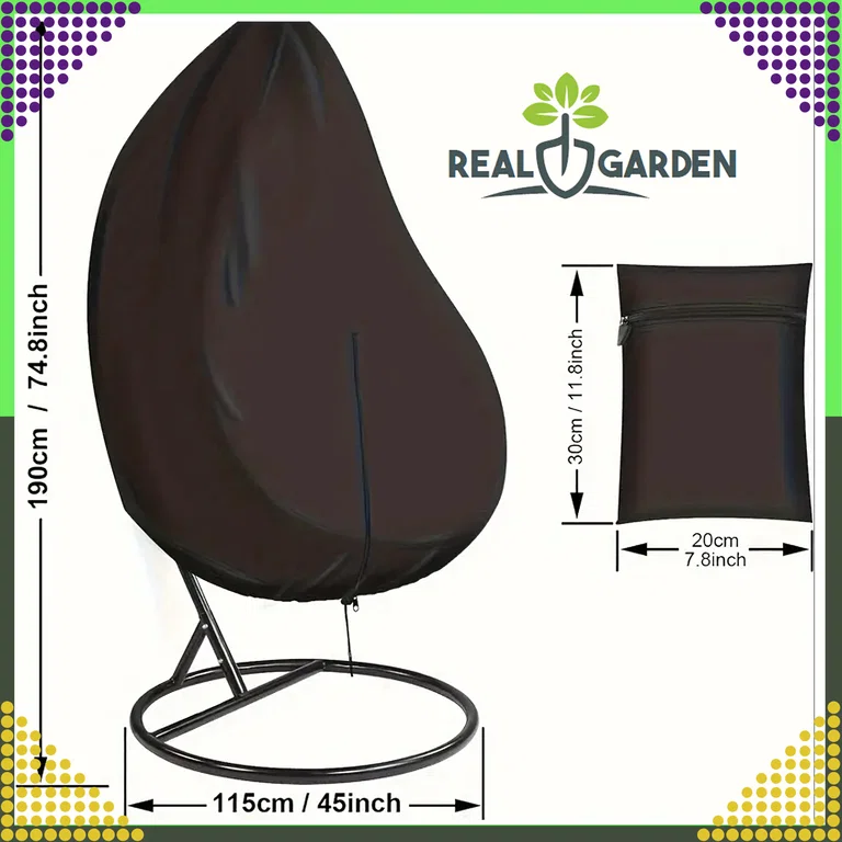 Pokrowiec ma uniwersalny rozmiar 190x115 cm, dzięki czemu pasuje do większości foteli ogrodowych typu „bocianie gniazdo”.