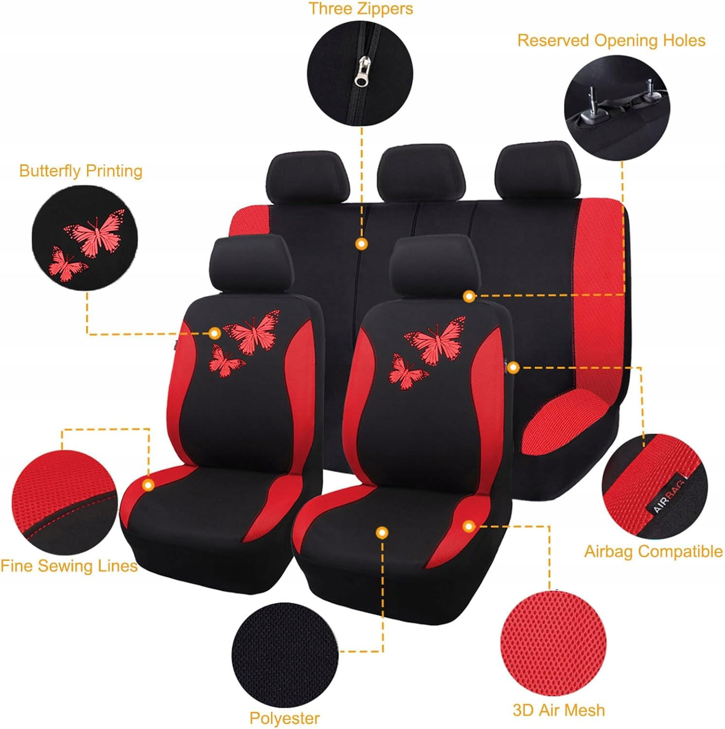 Uniwersalna funkcja:Niewidoczny zamek błyskawiczny w pokrowcach na tylne siedzenia można podzielić na 40/60, 50/50, 60/40, co pasuje do większości pojazdów, samochodów osobowych, SUV-ów, vanów i ciężarówek.