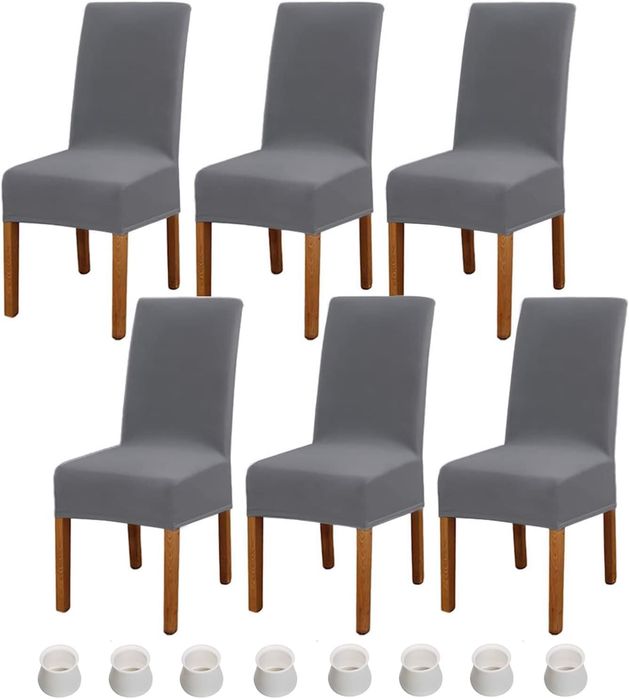 Pokrowiec na krzeso zdejmowany szary zestaw 6szt