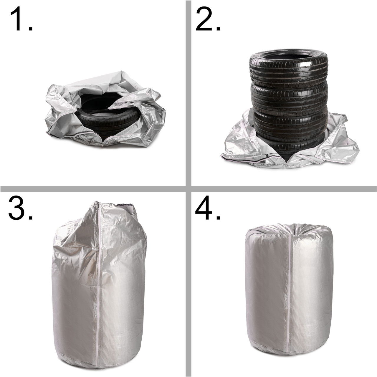 PRAKTYCZNE PRZECHOWYWANIE - Pokrowiec pozwala na estetyczne przechowywanie opon, chroniąc je przed czynnikami zewnętrznymi i przedłużając ich żywotność. To niezbędny element wyposażenia każdego kierowcy – skutecznie zabezpiecza opony zarówno latem, jak i zimą.