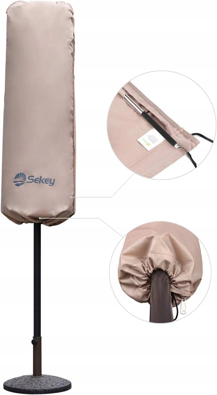 Rozmiar: 160 × 40/60 cm, gwarantowane dopasowanie do pokrowca ochronnego na parasol, materiał: 600D Oxford o gramaturze około 300 g/m², sprawdź wymiary osłony przeciwsłonecznej, aby prawidłowo dopasować pokrowiec, pamiętaj: 60 cm nie oznacza średnicy. Jest to cylindryczny pokrowiec ochronny, którego góra ma 40 cm, a dół 60 cm.
