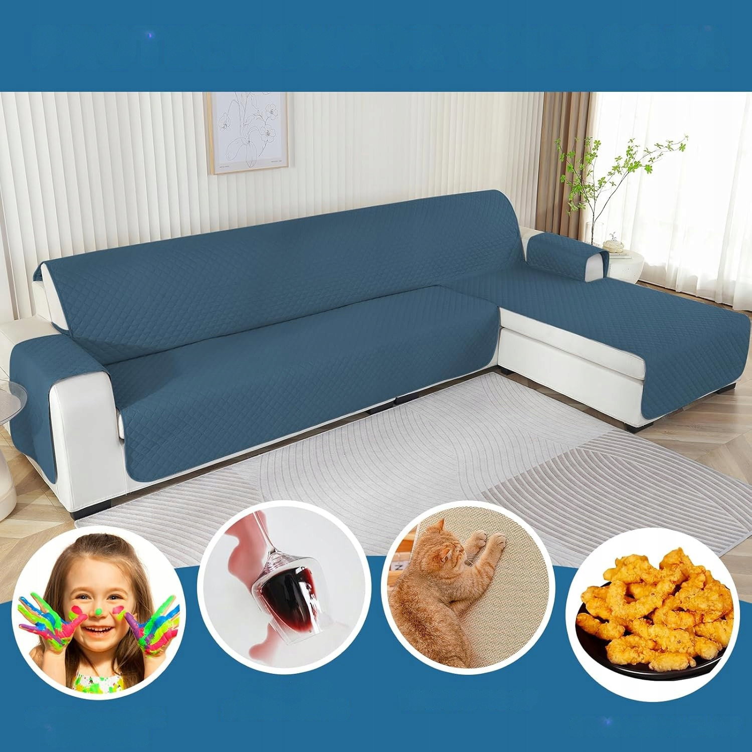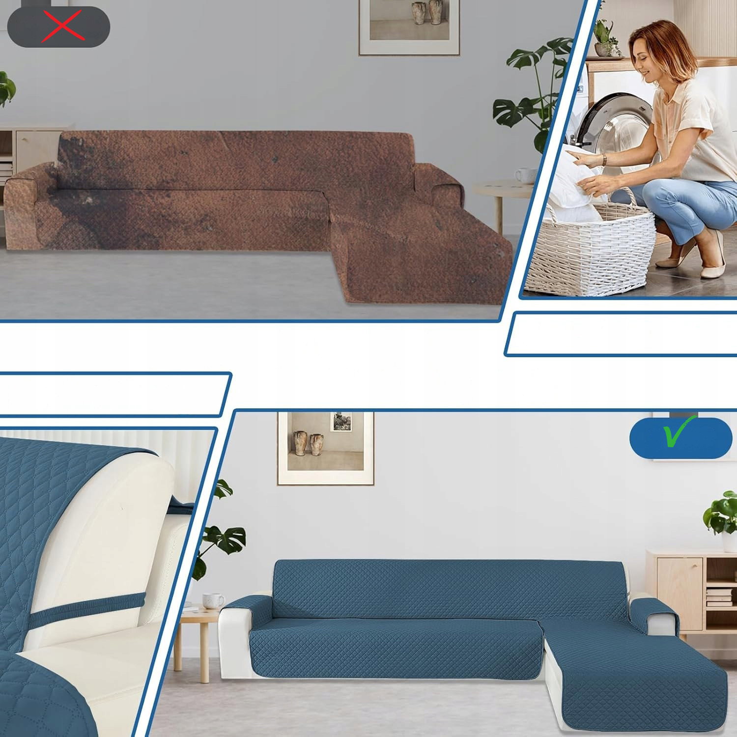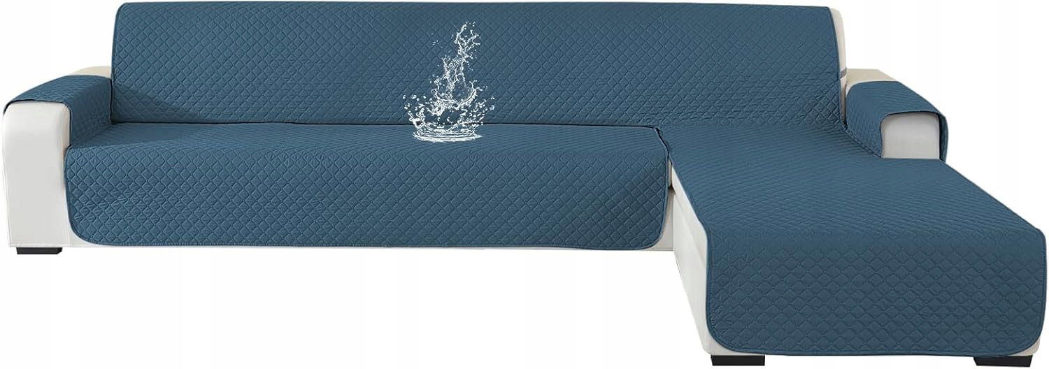 - Zastosowanie: pokrowiec przeznaczony jest do sof narożnych typu L z półwyspem w salonach i pokojach dziennych. Chroni siedziska, oparcie oraz część podłokietników przed zabrudzeniami i wilgocią. Sprawdza się w codziennym użytkowaniu, także w domach z dziećmi i zwierzętami.