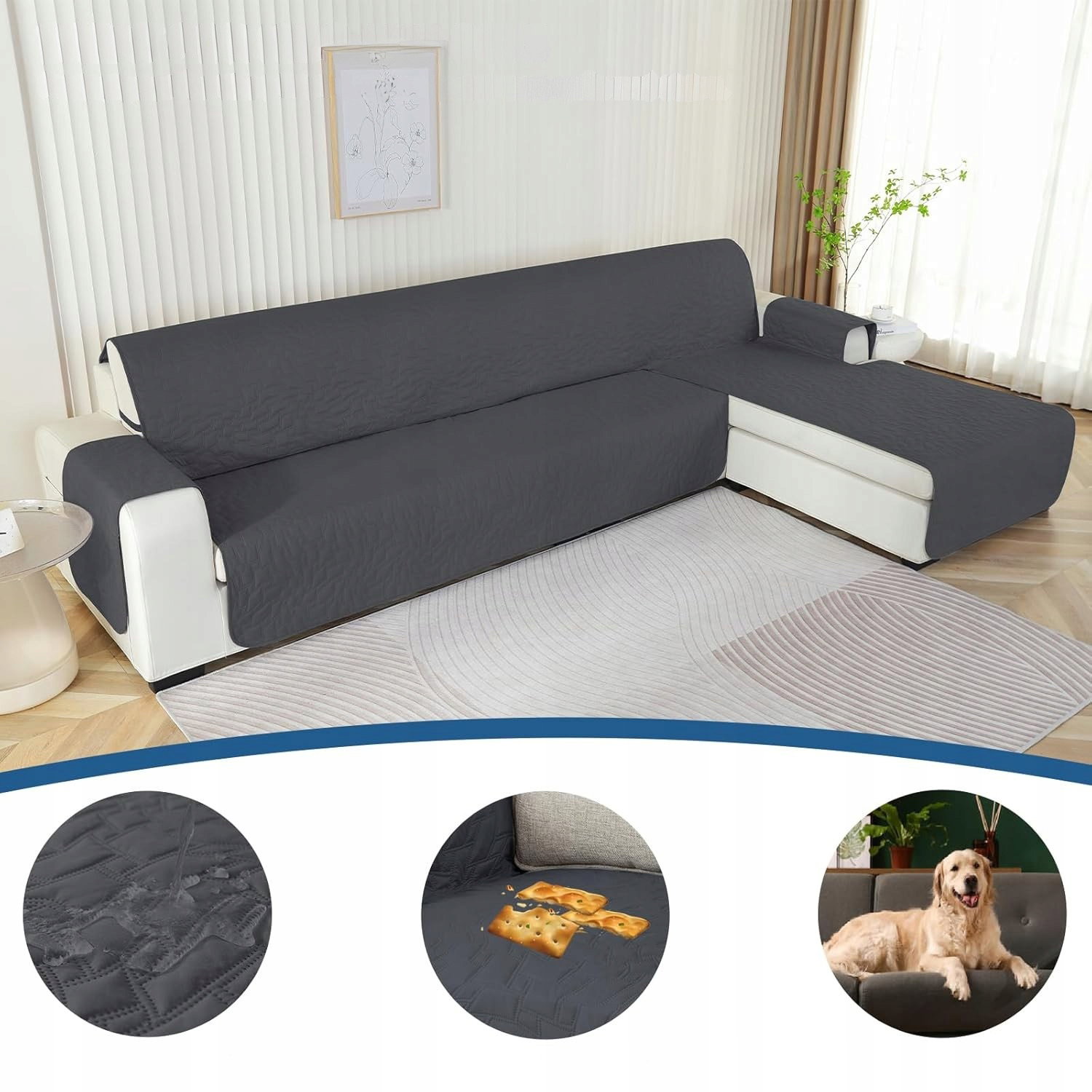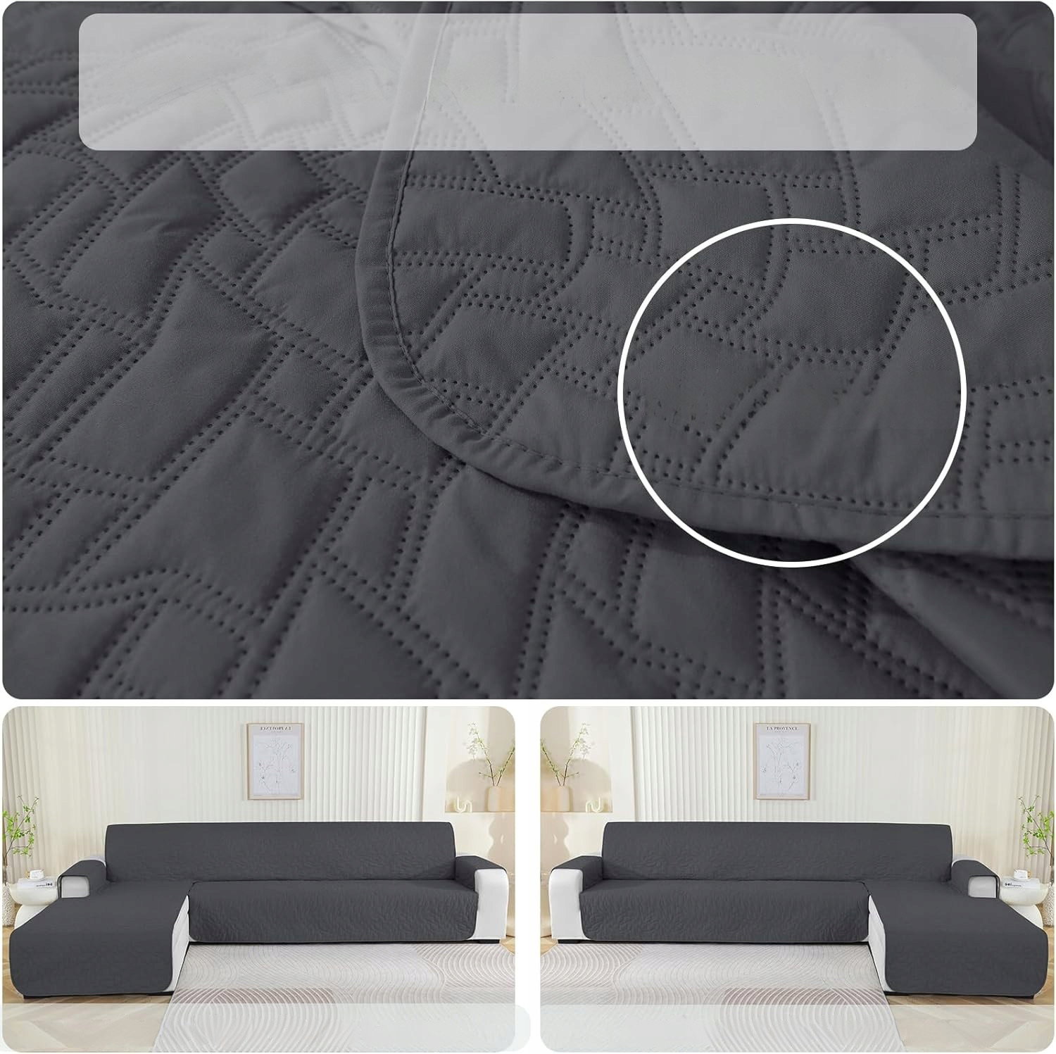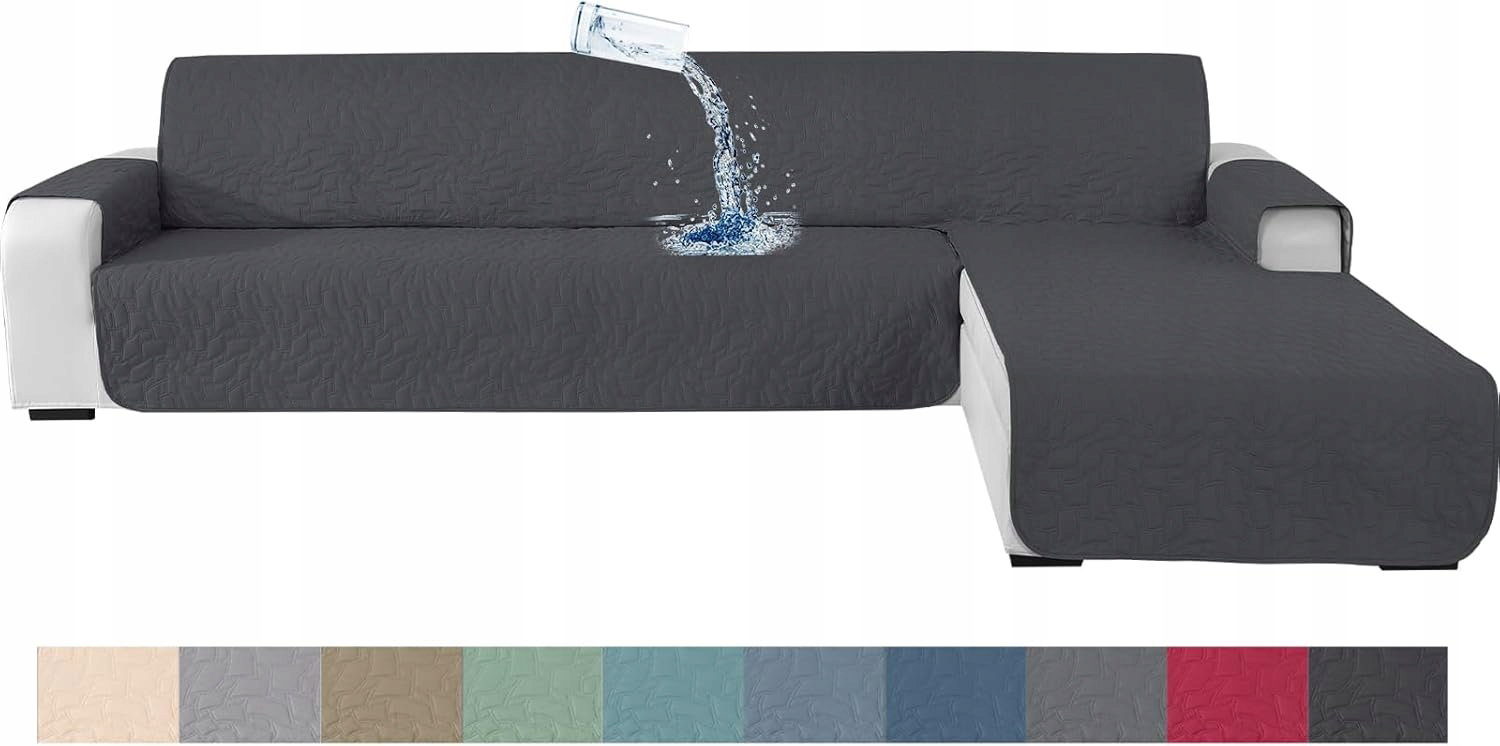 Ystyle Pokrowiec na sofę w kształcie litery L, na sofę 4-osobową, wodoszczelny, w kształcie litery L, antypoślizgowy (285cm, Ciemnoszary)