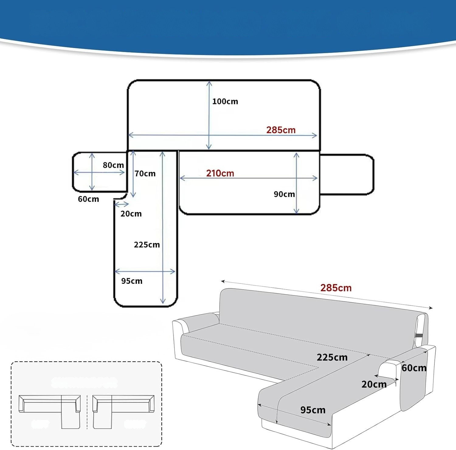 - Kompatybilność lewa / prawa: konstrukcja jest odwracalna i kompatybilna zarówno z lewym, jak i prawym półwyspem. Rozwiązanie pozwala na swobodne dopasowanie pokrowca bez względu na układ narożnika. Jeden wariant pasuje do obu konfiguracji.