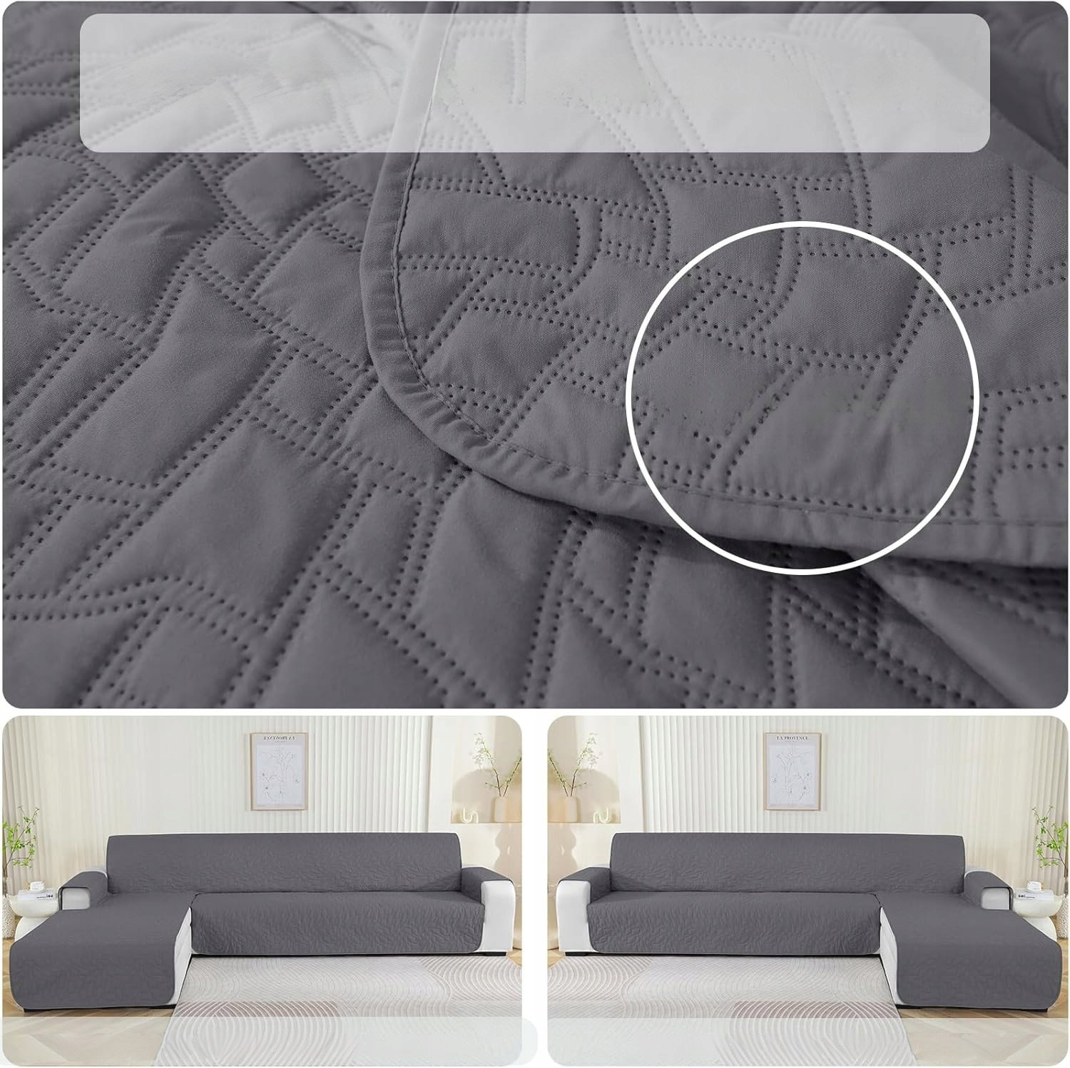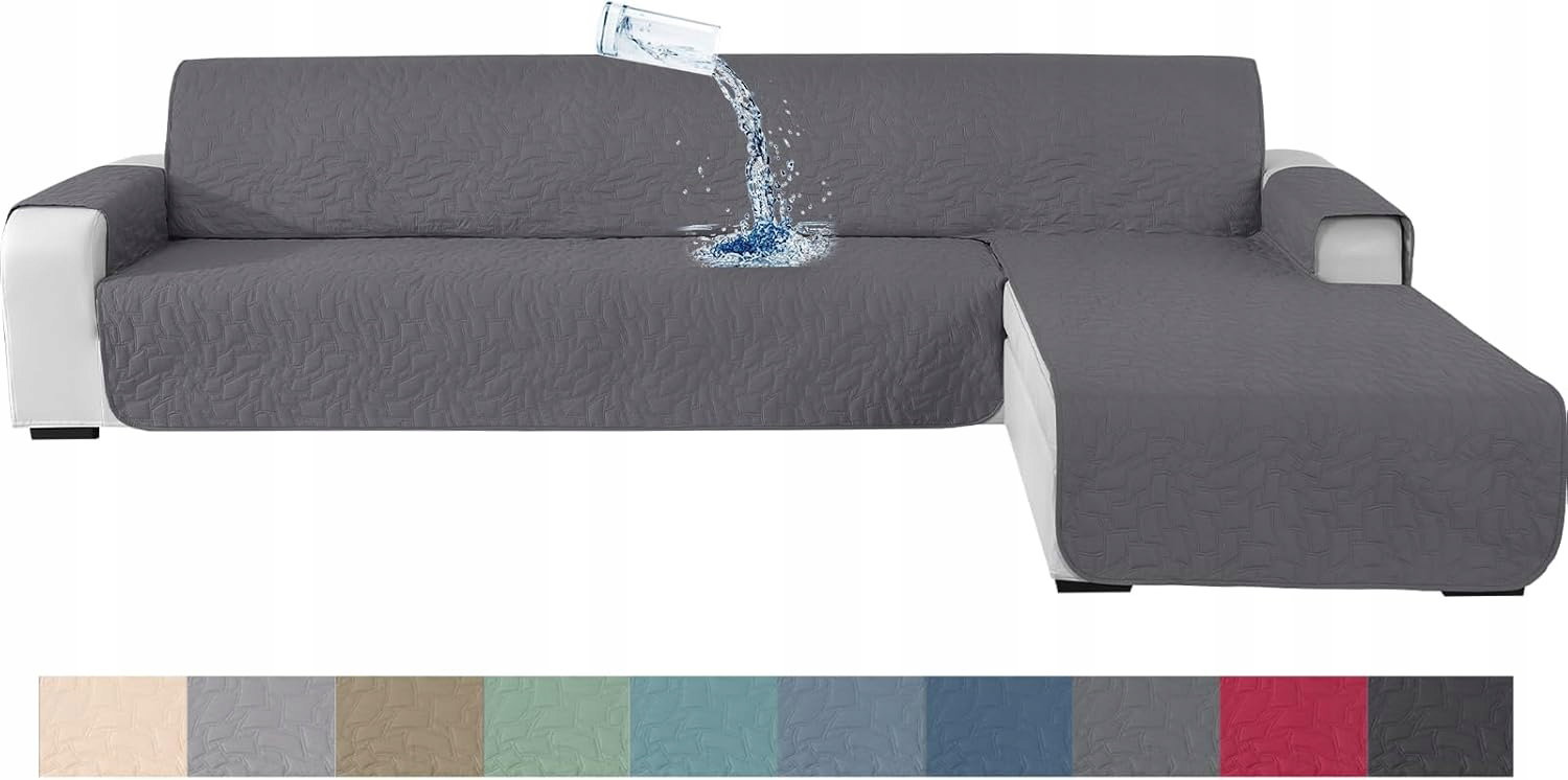 Ystyle Pokrowiec na sofę w kształcie litery L, na sofę 4-osobową, wodoszczelny, w kształcie litery L, antypoślizgowy (285cm, Jasnoszary)