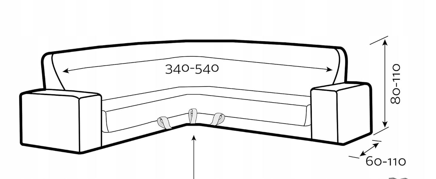 ✅ Zakres wymiarowy sofy: 340-540 cm (sumaryczna długość narożnika)