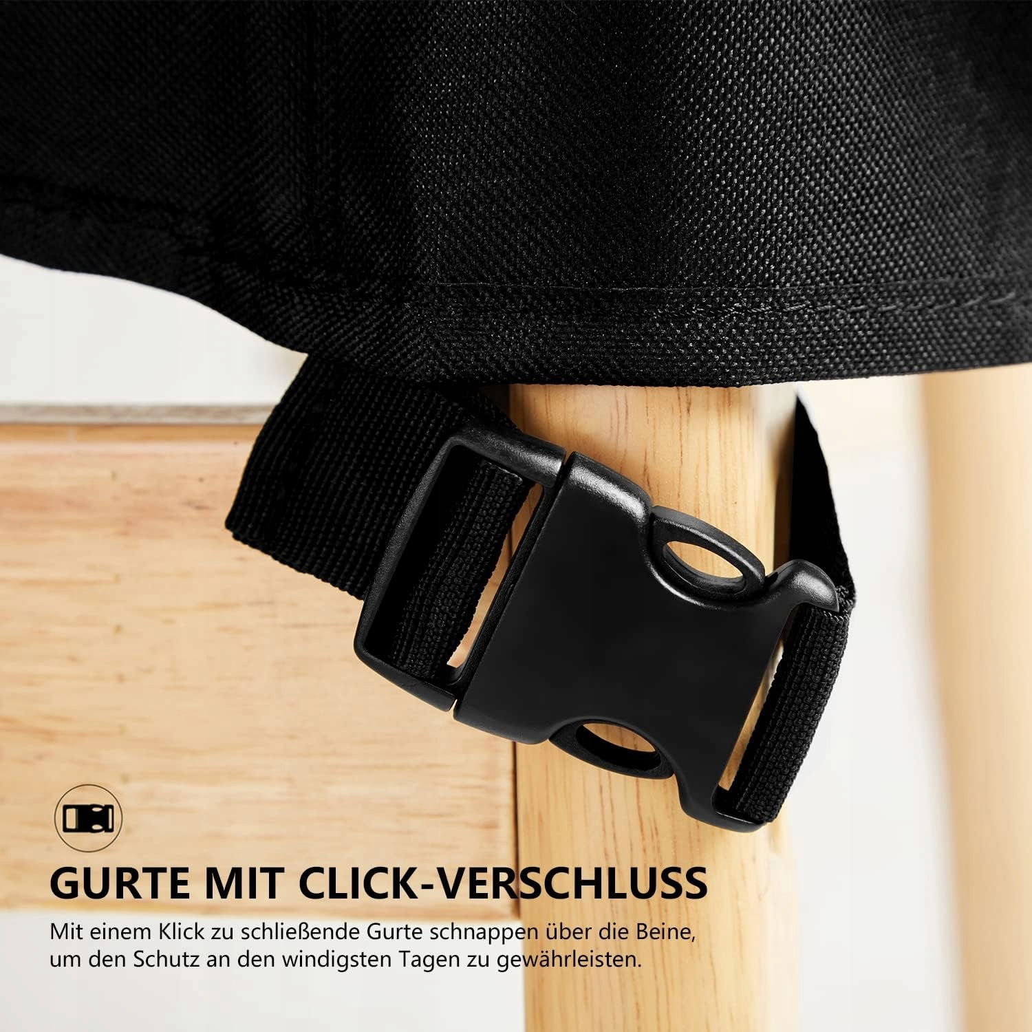 Nogi meblowe wystarczy zamocować za pomocą pasków, które są wyposażone w zatrzask. Utrzymuj pokrowiec stabilnie i nie pozwól, aby się poruszał w najwietrzniejsze dni. Klamry można szybko odpiąć.