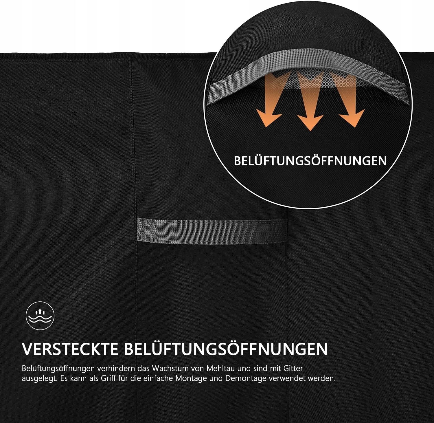 Górna część, wykonana z wodoodpornego materiału, chroni Twoje ulubione meble ogrodowe przed trudnymi wpływami środowiska, takimi jak deszcz, śnieg, mróz, mgła i wiele innych, dzięki czemu można bez problemu pozostawić meble na zewnątrz.