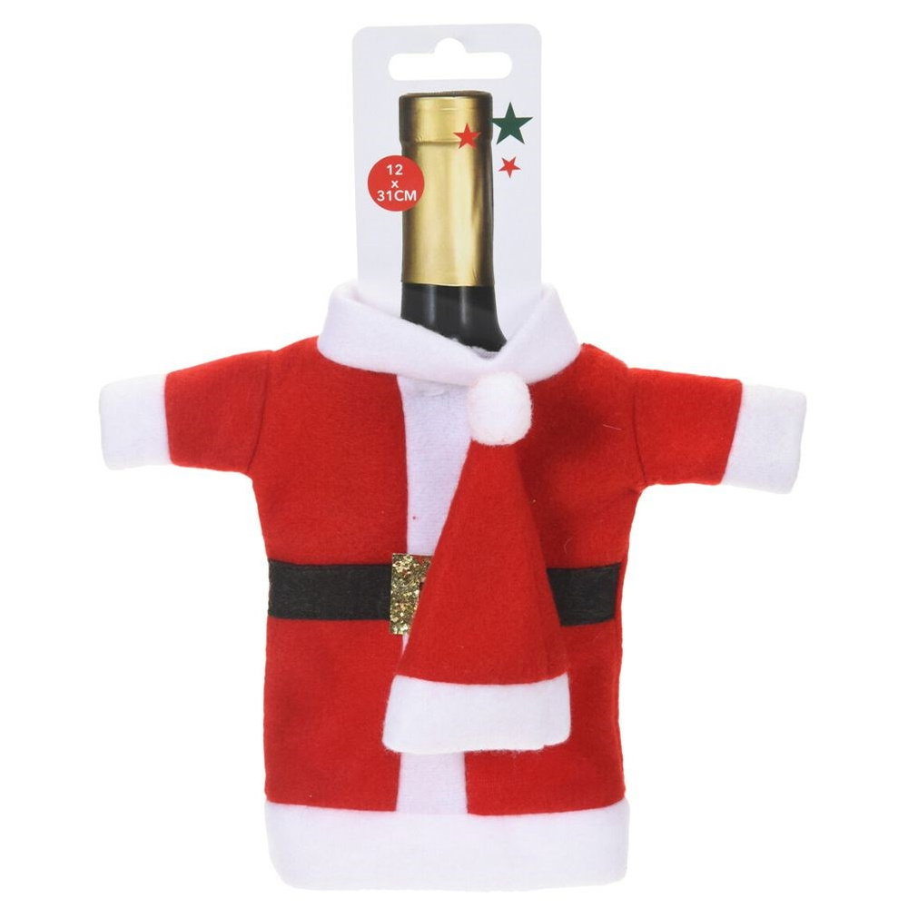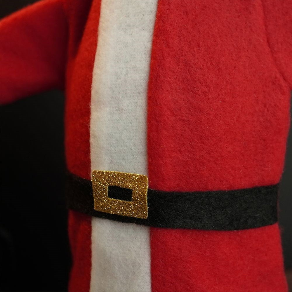 ŚWIĄTECZNY - Pokrowiec świąteczny na butelkę wina w formie ubrania Mikołaja. W zestawie marynarka (o długości 19 cm) oraz czapka Świętego Mikołaja (o długości 12 cm).