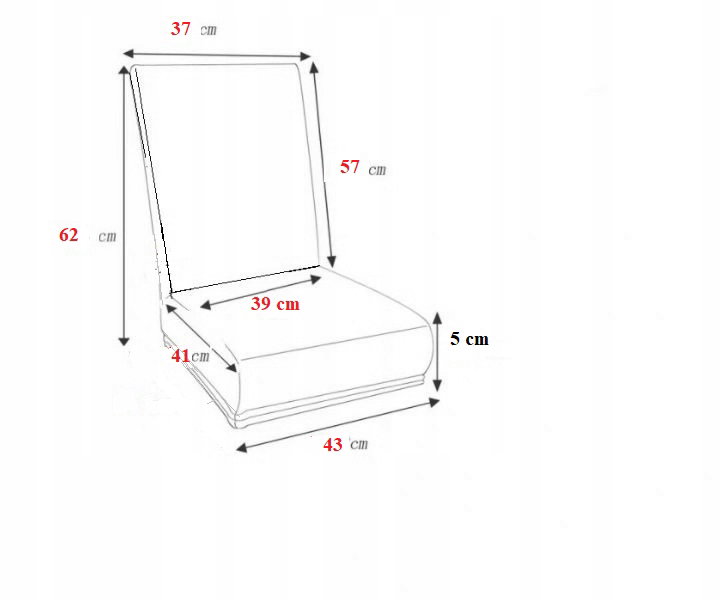Siedzisko (kształt trapezu): szerokość 39 x 41 cm, długość 43 cm