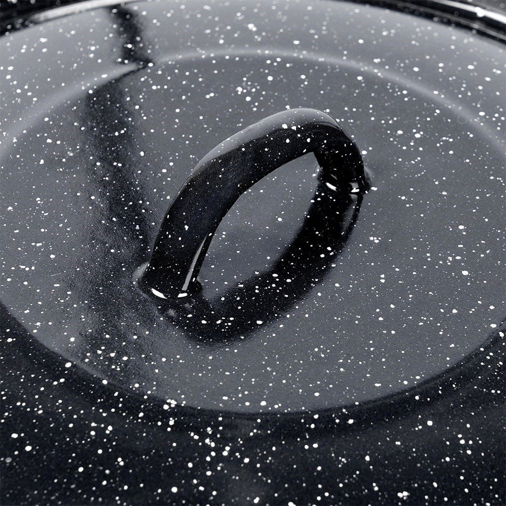 EMALIOWANA - Wykonana ze stali emaliowanej w kolorze czarnym. Emalia, którą pokryto pokrywę jest materiałem przyjaznym dla zdrowia, a nawet bezpiecznym dla alergików.