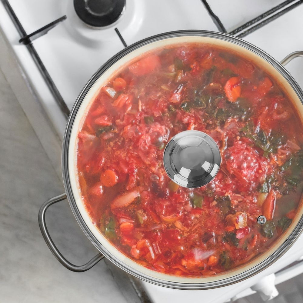 FUNKCJONALNA - Pokrywa posiada odpowietrznik, dzięki któremu pozbywamy się nadmiaru pary. Pokrywka jest delikatnie wypukła, co pomaga w cyrkulacji gorącego powietrza.