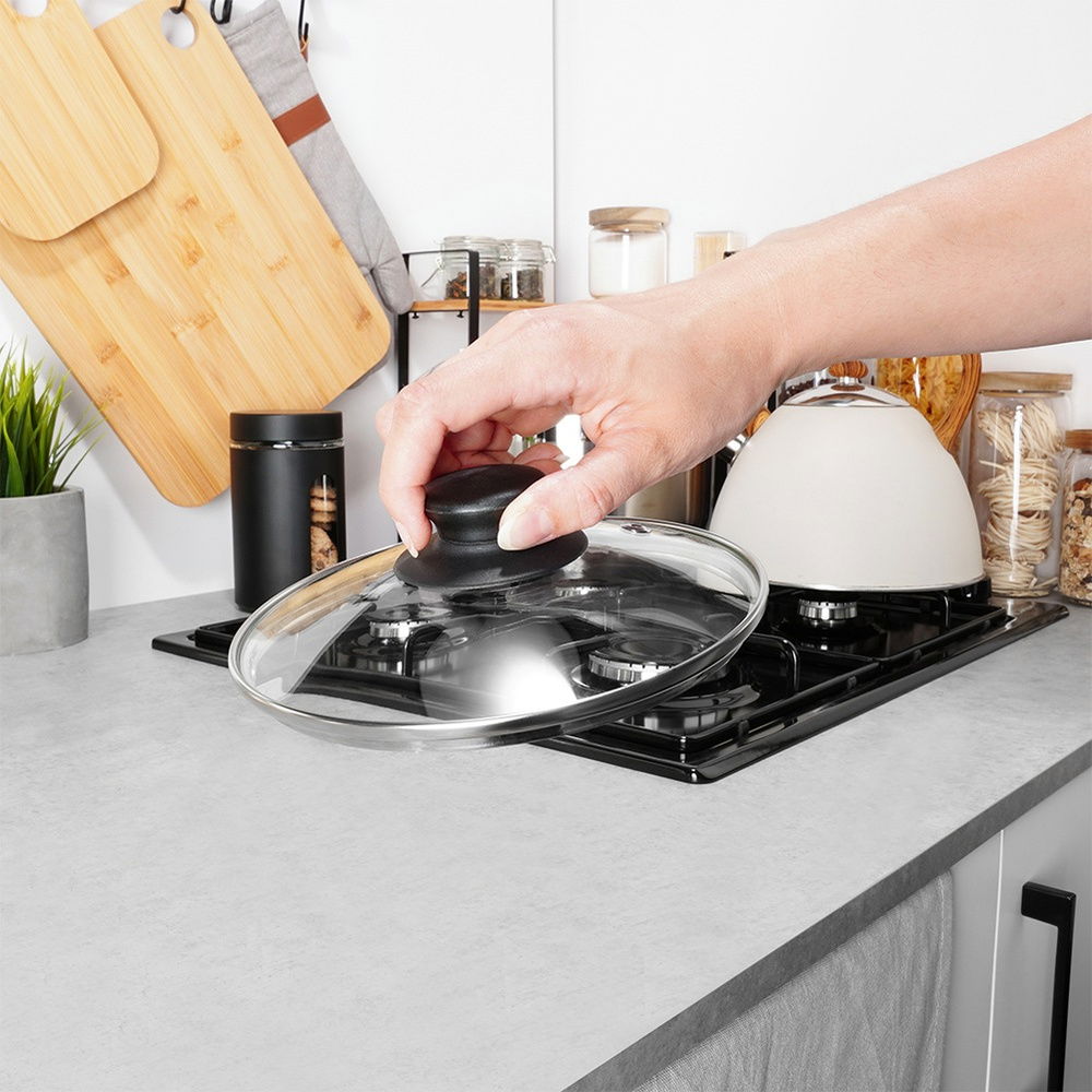 WYGODNA W UŻYTKOWANIU - Pokrywa wyposażona jest w wygodny uchwyt, który ułatwi jej zdejmowanie i przenoszenie. Wysoki rant sprawia, że pokrywka idealnie i szczelnie przylega do krawędzi naczynia. Nadaje się do mycia w zmywarce do naczyń.