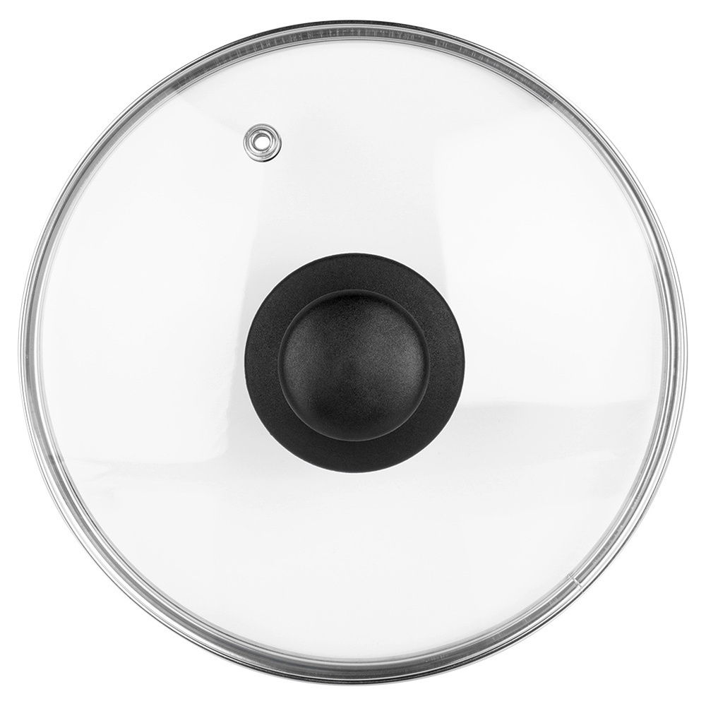 SZKLANA - Pokrywka wykonana z żaroodpornego, przezroczystego szkła. Posiada obręcz wykonaną ze stali nierdzewnej w kolorze srebrnym oraz uchwyt z wytrzymałego tworzywa w czarnym kolorze. Przezroczysty kolor pokrywki pozwoli nam na sprawdzenie procesu gotowania bez konieczności jej podnoszenia. Pokrywka jest odporna na wysokie temperatury do max. +200°C.