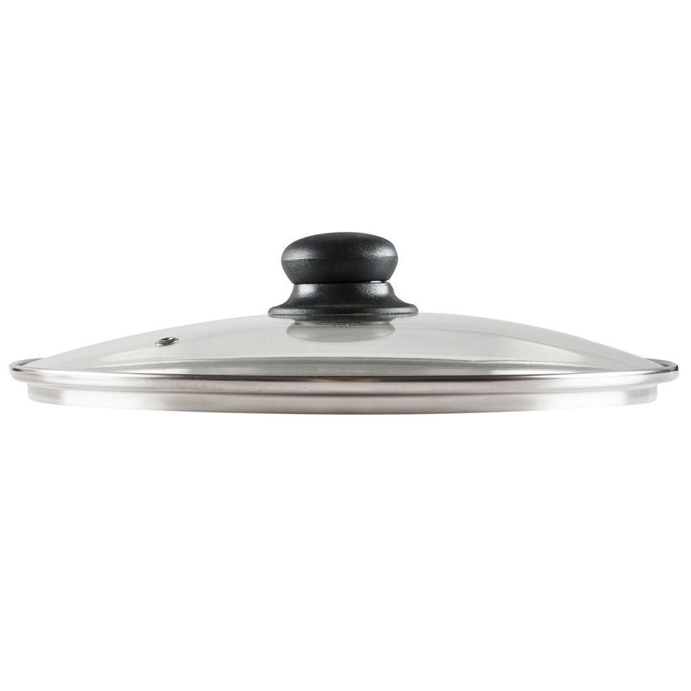 SZKLANA - Pokrywka wykonana z żaroodpornego, przezroczystego szkła. Posiada obręcz wykonaną ze stali nierdzewnej w kolorze srebrnym oraz uchwyt z wytrzymałego tworzywa w czarnym kolorze. Przezroczysty kolor pokrywki pozwoli nam na sprawdzenie procesu gotowania bez konieczności jej podnoszenia. Pokrywka jest odporna na wysokie temperatury do max. +200°C.