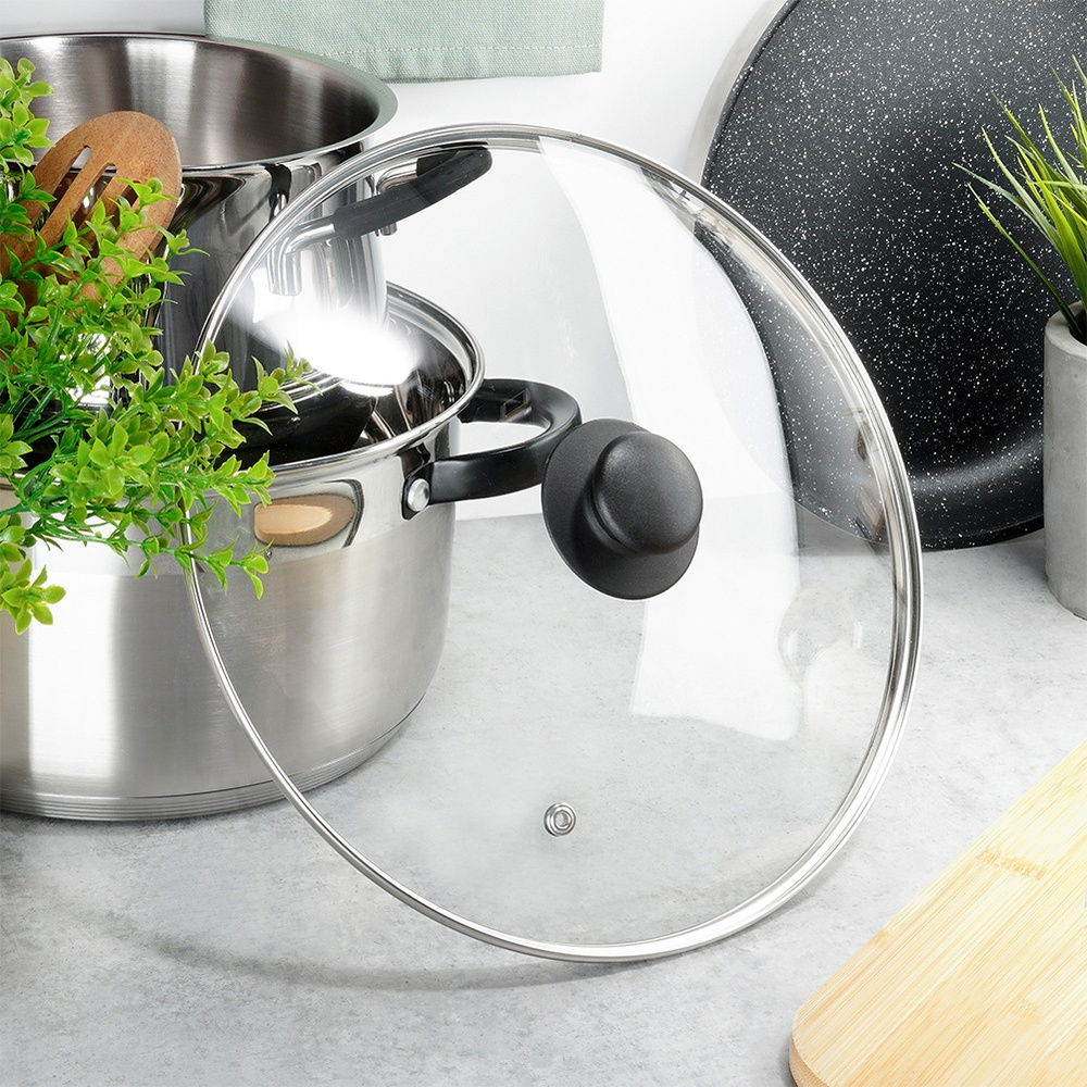 WYGODNA W UŻYTKOWANIU - Pokrywa wyposażona jest w wygodny uchwyt, który ułatwi jej zdejmowanie i przenoszenie. Wysoki rant sprawia, że pokrywka idealnie i szczelnie przylega do krawędzi naczynia. Nadaje się do mycia w zmywarce do naczyń.
