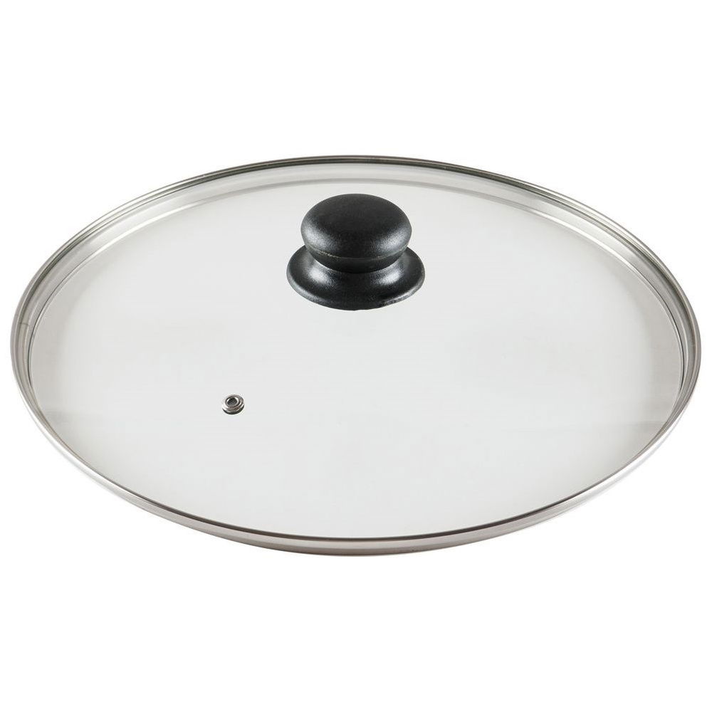 UNIWERSALNA - Szklana pokrywa ze stalową obręczą i uchwytem. Pokrywka ma średnicę 30 cm i wysokość z uchwytem 7,5 cm. Można ją użyć do pokrycia każdego rodzaju garnków, patelni i rondli w tym rozmiarze.