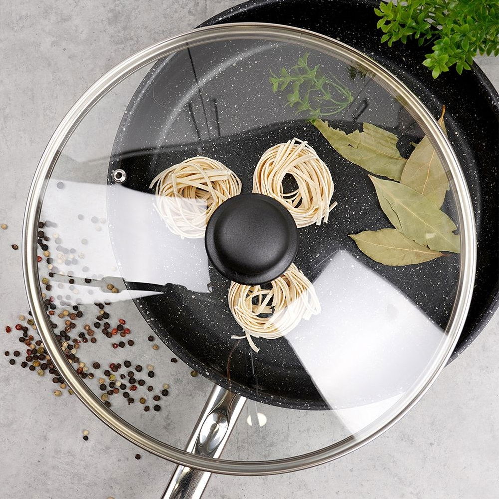 WYGODNA W UŻYTKOWANIU - Pokrywa wyposażona jest w wygodny uchwyt, który ułatwi jej zdejmowanie i przenoszenie. Wysoki rant sprawia, że pokrywka idealnie i szczelnie przylega do krawędzi naczynia. Nadaje się do mycia w zmywarce do naczyń.