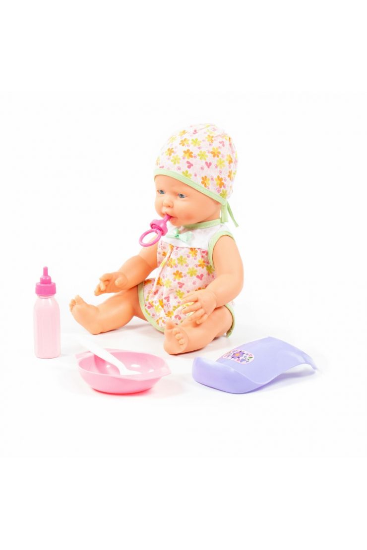 Pokochasz szybko lalkę "Wesoły", jej kolorowe ubranka i uroczą buzię. Wiele dzieci marudzi podczas śniadania, jednak nie należy do nich "Wesoły", który uwielbia jeść ze swojej ozdobnej miseczki. Lalka będzie Ci towarzyszyć w trakcie wielu przygód, a jeśli w międzyczasie zgłodnieje, nakarmisz ją z załączonej butelki. Gdyby natomiast marudziła, z ratunkiem przyjdzie smoczek, który możesz włożyć do buzi "Wesołego". Brudnym niespodziankom w trakcie jedzenia zapobiegnie z kolei uroczy śliniaczek. Z tyłu opakowania kartonowy certyfikat narodzin do wycięcia i wypełnienia. Zabawa lalkami uczy dzieci wyrażania emocji, budowania kontaktów międzyludzkich, zrozumienia życiowych sytuacji, opieki nad sobą i innymi.