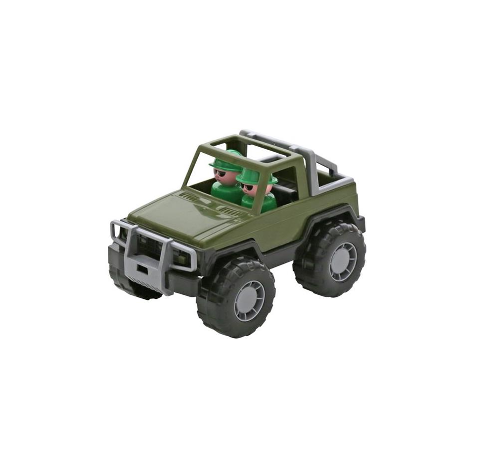 Zabawki związane z wojskiem nie zawsze muszą kojarzyć się z odgrywaniem scen batalistycznych. Żołnierze zawsze fascynowali, budzili respekt, szacunek i zaufanie. Dzieci chętnie widziały w nich swoich bohaterów. Ulubione postacie muszą mieć zapewniony odpowiedni transport. Dla maluchów interesujących się militariami firma POLESIE ma w swojej ofercie serię samochodów wojskowych. SAMOCHÓD JEEP SAFARI to sprytny pojazd do szybkiego przemieszczania się po trudnym afrykańskim terenie. Wyposażony w cztery szerokie koła umożliwia jazdę po nierównych nawierzchniach. W szerokiej kabinie umieszczono figurki dwóch żołnierzy. Wykonany z wysokiej jakości plastiku produkt jest trwały i bezpieczny w użytkowaniu.