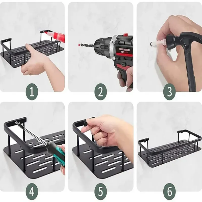 System montażu na samoprzylepne haczyki pozwala na szybkie i bezinwazyjne zamocowanie półki na każdej gładkiej powierzchni. Dzięki temu montaż jest prosty i nie wymaga wiercenia otworów w ścianach.