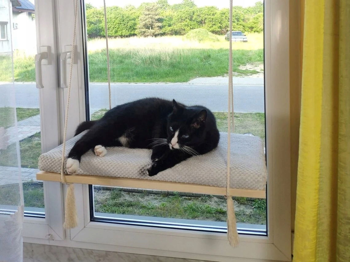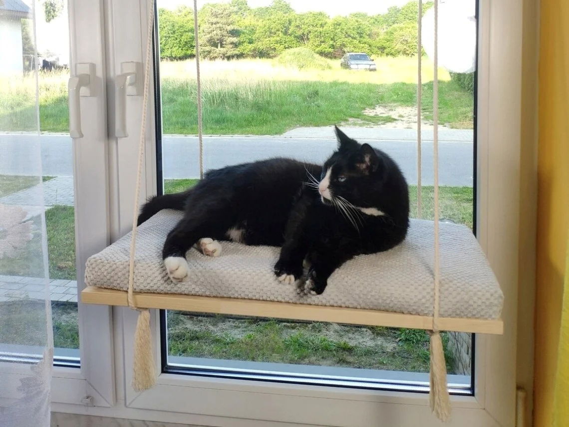Zapewnij swojemu kotu komfortowe miejsce do odpoczynku i obserwacji - Drewniana półka okienna