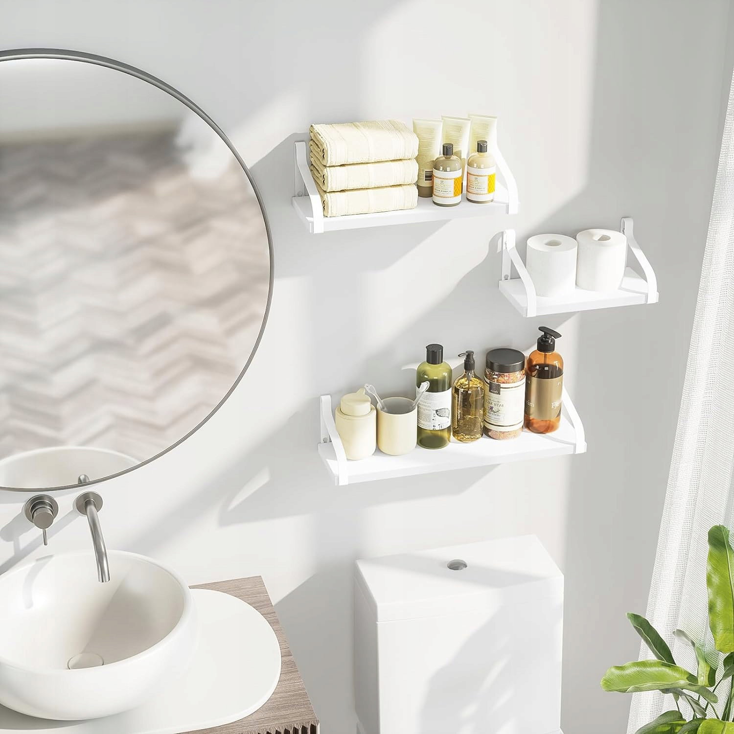 Stabilny regał do montażu na ścianie: Ten regał ścienny jest wykonany w 100% z litego drewna i malowanych proszkowo metalowych uchwytów, jest wytrzymały i nierdzewny, bardzo trwały do przechowywania wielu Twoich przedmiotów
