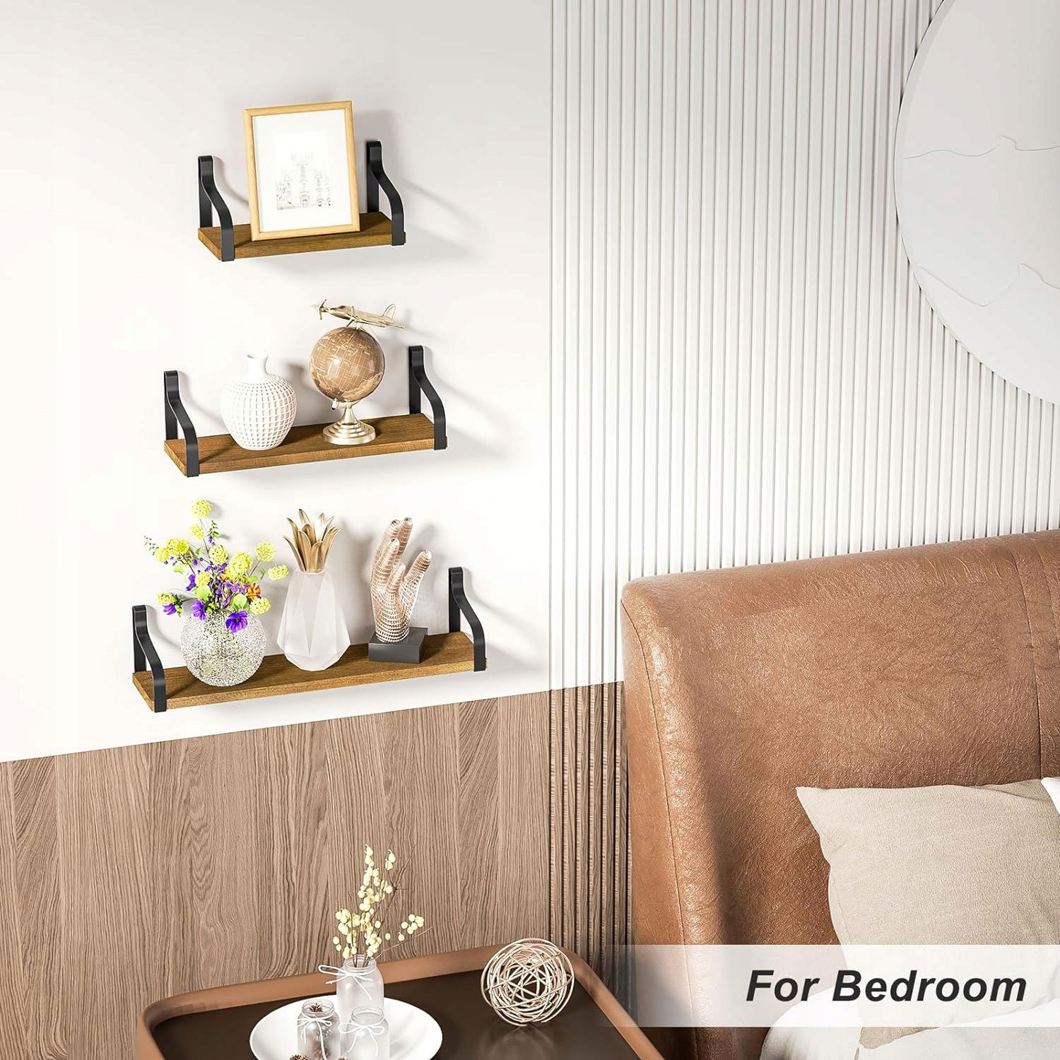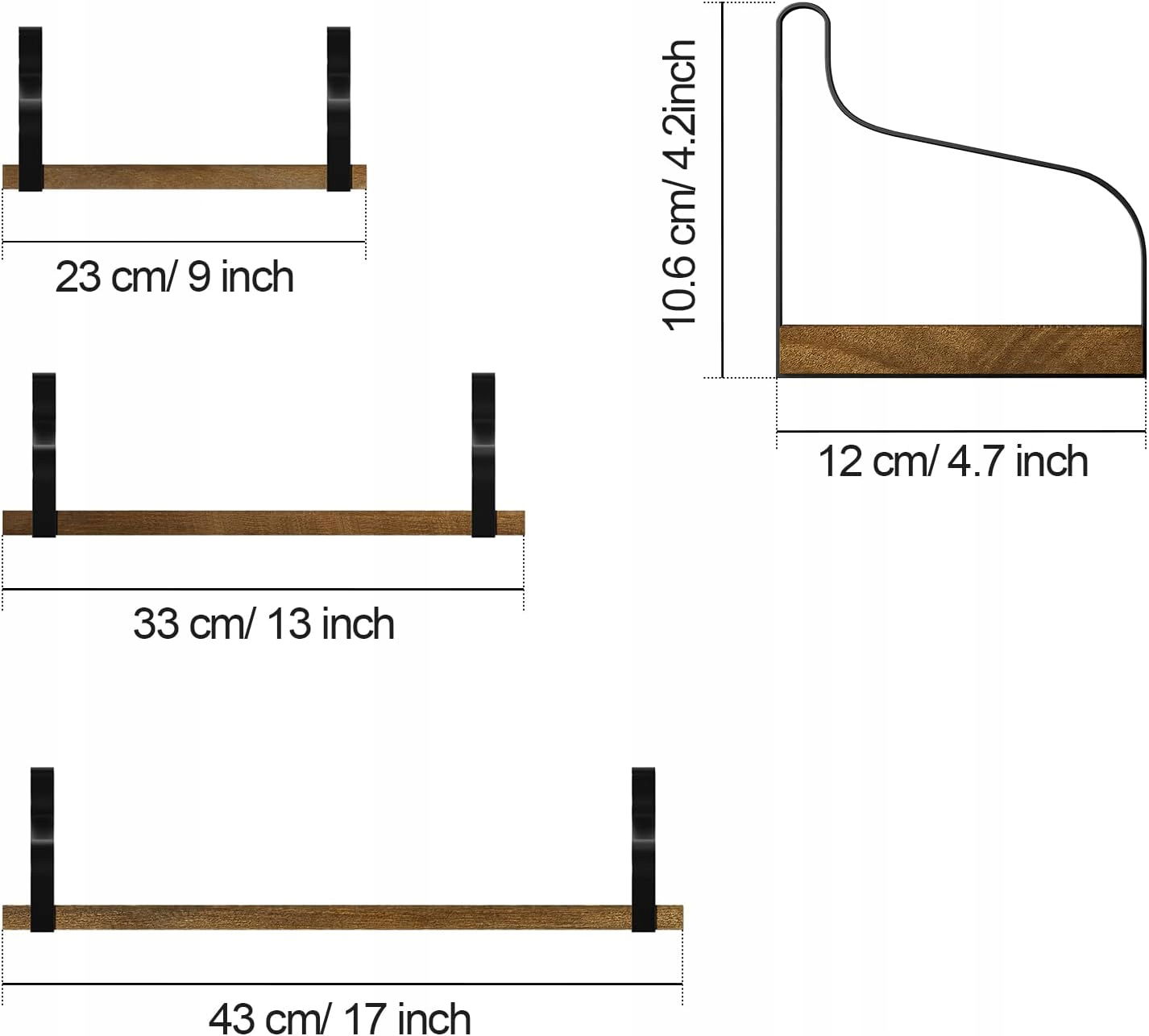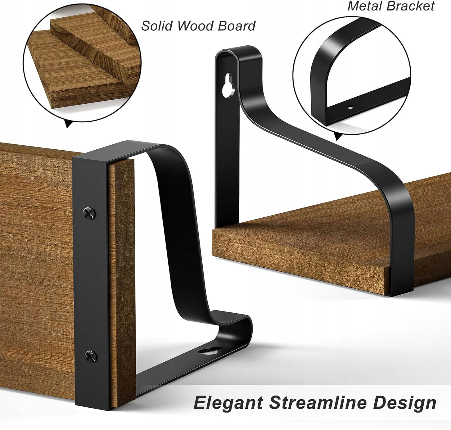 Różne style instalacji: unikalna konstrukcja prostokątnych uchwytów trapezowych umożliwia zainstalowanie półki z deską na górze wsporników lub na dole, a wszystkie niezbędne akcesoria, w tym śruby, kołki i instrukcje są zawarte w pakiecie, bardzo łatwe do zainstalowania na ścianie.