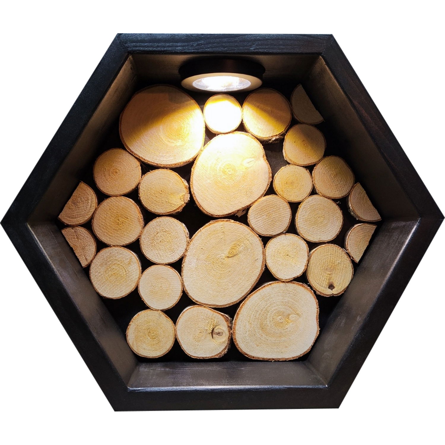 Półka heksagon - Plastry Drewna z podświetleniem LED
