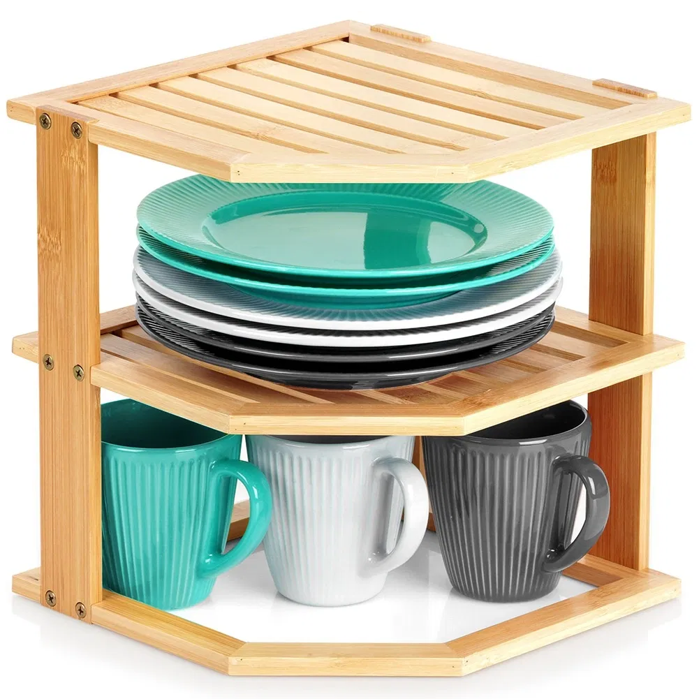 Półka Kuchenna Bambusowa na Blat Regał do Szafki Narożna Stojak Organizer