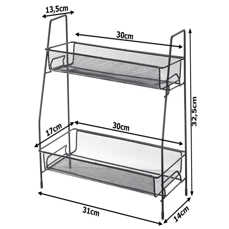 Przedstawiamy stylowy i wszechstronny metalowy organizer dwupoziomowy w stylu loft, który stanie się nieodłącznym elementem Twojej łazienki lub kuchni. Dzięki swojemu eleganckiemu wyglądowi i solidnej konstrukcji, ten organizer nie tylko zorganizuje przestrzeń w okół ciebie, ale również doda im nowoczesnego charakteru.
