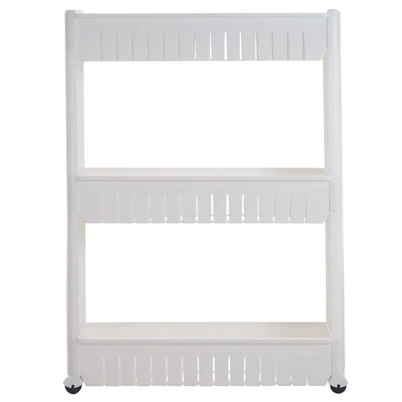 Regał dzięki kółkom sprawdzi się w wielu pomieszczeniach. W łazience utrzyma nasze kosmetyki w jednym miejscu, a w kuchni posłuży za pojemnik na produkty spożywcze. Dzięki wielofunkcyjności tej szafki możemy sami decydować gdzie ją ustawimy i z ilu półek będzie się składać (W zestawie 3 półki).