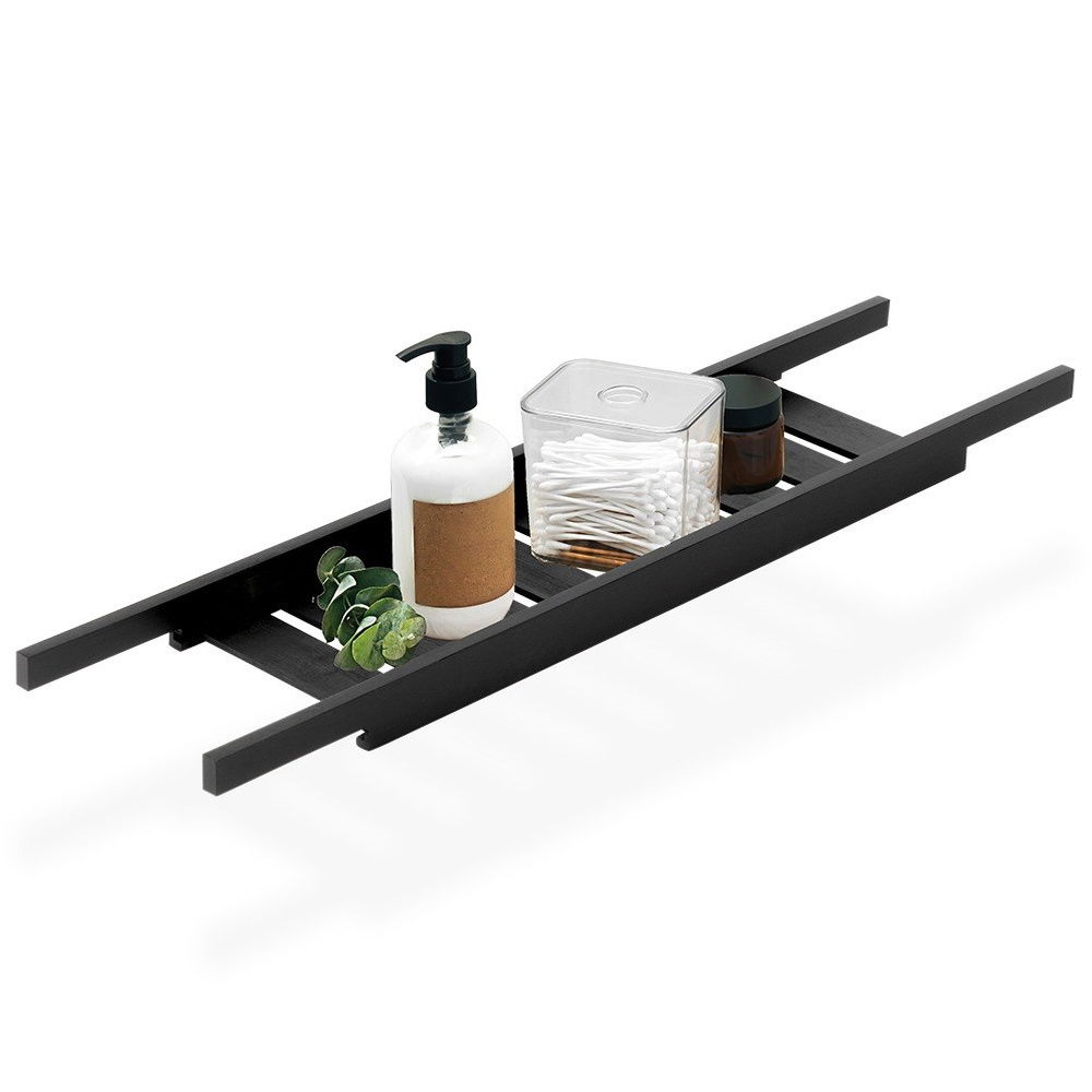 Półka na Wannę Łazienkowa Bambusowa Czarna na Kosmetyki Akcesoria Napoje