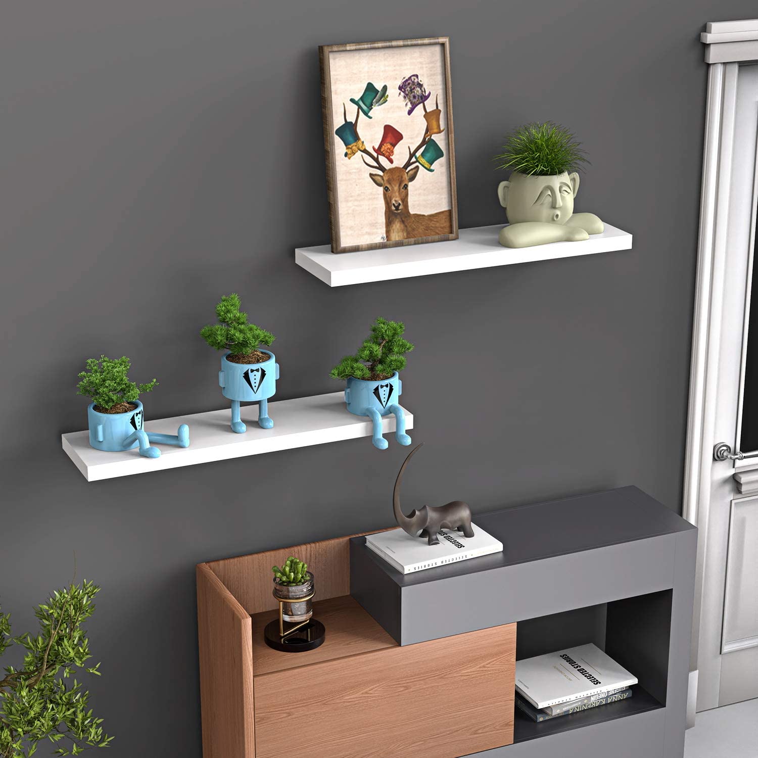- Solidne pływające półki - wykonane z płyty MDF, struktura wewnętrzna jest jednolita, a wydajność jest stabilna, a indeks fizyczny nie zmienia się zbytnio w różnych środowiskach, aby uniknąć deformacji. Wystarczająco mocny, aby pomieścić wszelkie małe przedmioty, które chcesz