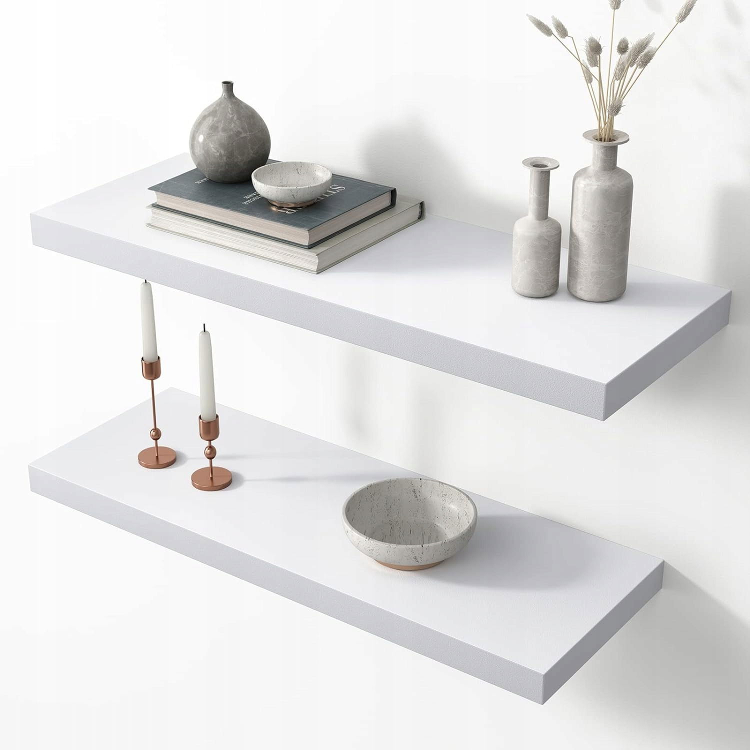 - Funkcjonalne półki ścienne - Uniwersalne pływające półki są przydatne do tworzenia większej przestrzeni do wyświetlania i przechowywania ulubionych przedmiotów, takich jak książki, płyty CD, ramki do zdjęć lub małe rośliny doniczkowe itp. Idealne do kuchni, łazienki, sypialni, salonu i nie tylko