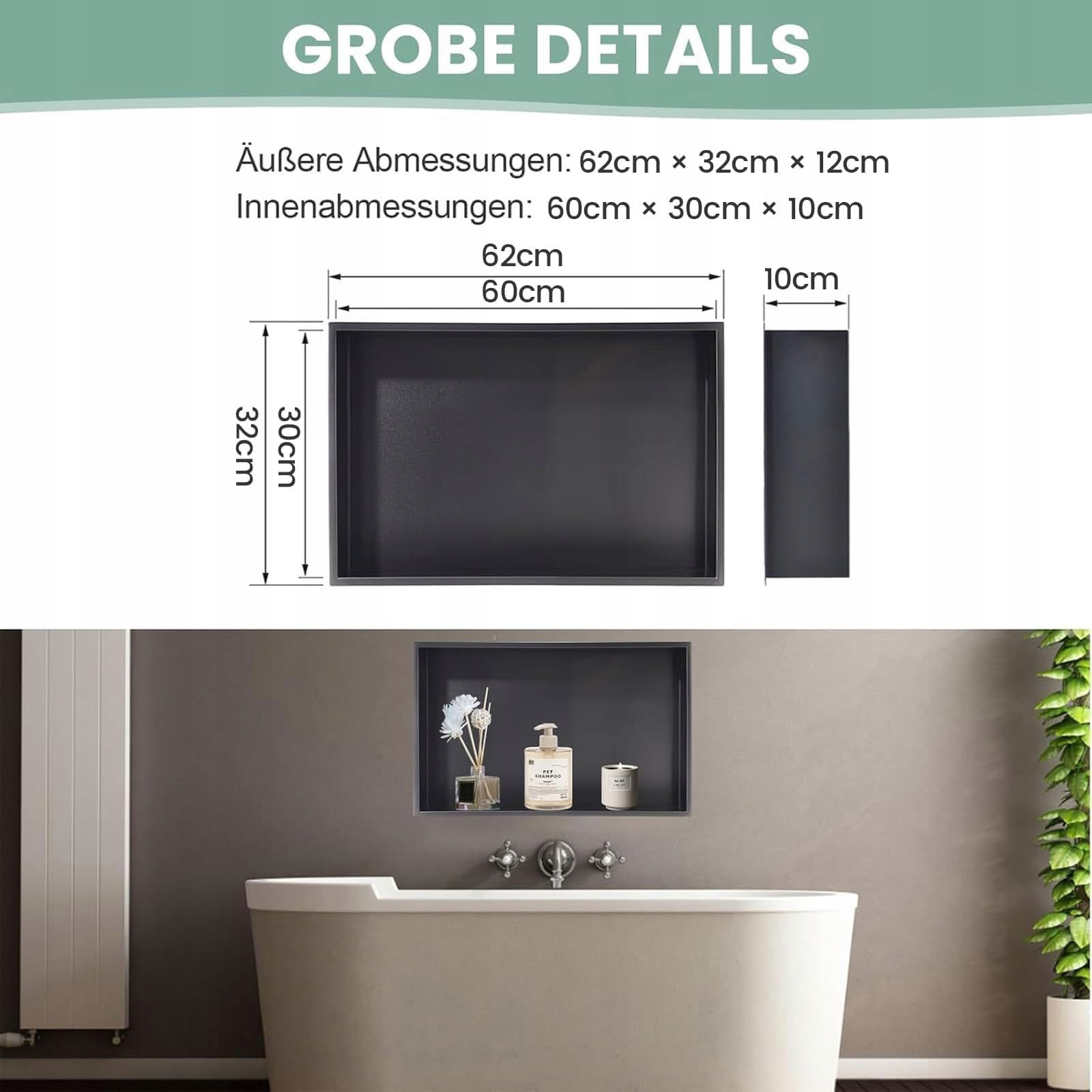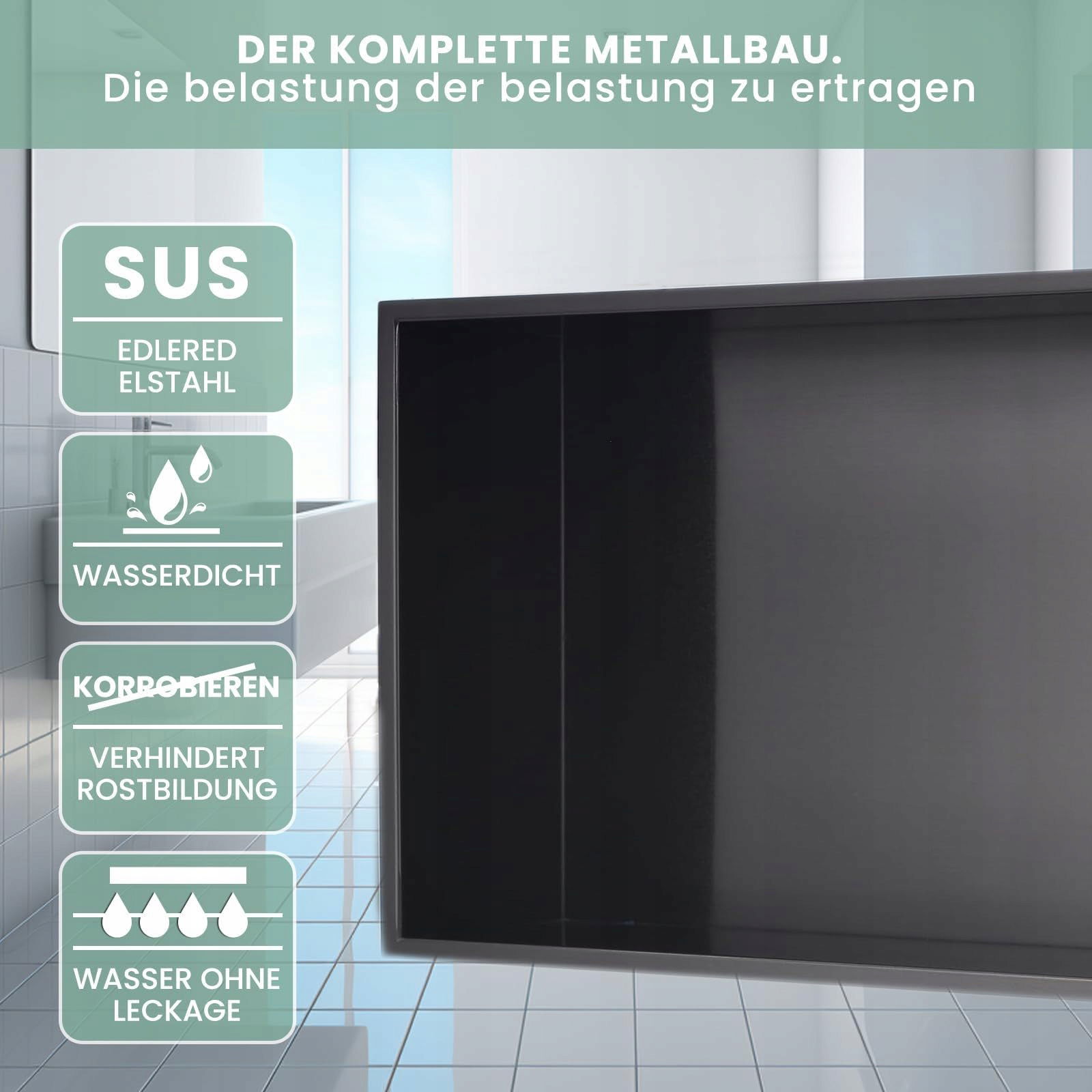 Półka Prysznicowa WUDLEP Czarna Wpuszczana 60x30cm Stal Nierdzewna