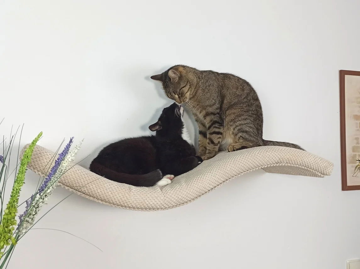 Pozwól swojemu kotu cieszyć się komfortem i widokiem z wysokości! Półka FALA Symetryczna Lewa to nie tylko stylowe i praktyczne rozwiązanie dla Twojego domu, ale również prawdziwy raj dla Twojego kota. Ta wisząca półka, wykonana z wysokiej jakości metalu, oferuje kotu komfortowe miejsce do spania, zabawy, odpoczynku i obserwacji otoczenia. Dzięki niewidocznym elementom montażowym i eleganckiemu designowi półka doskonale wkomponuje się w każdy styl wnętrza.