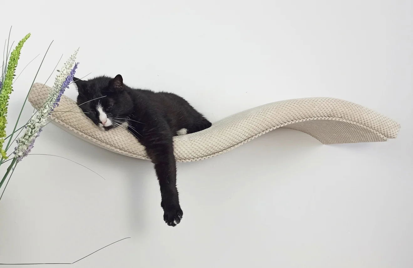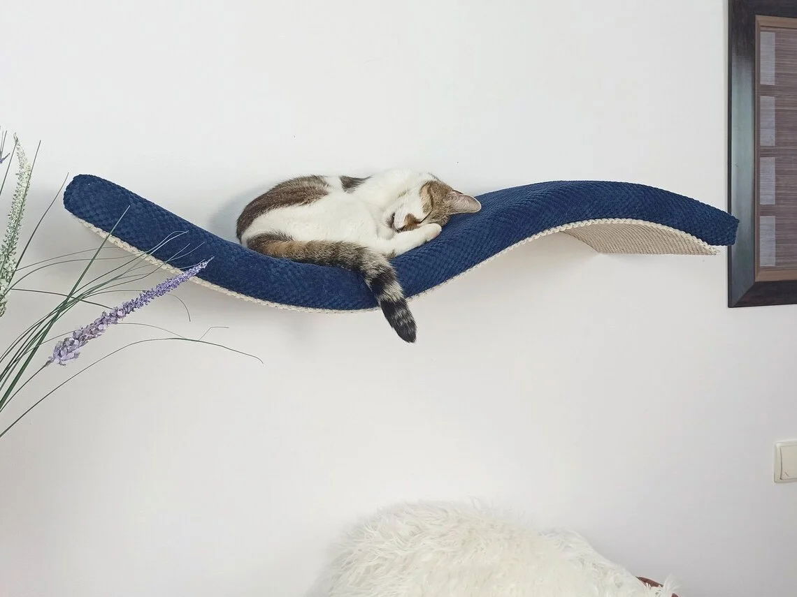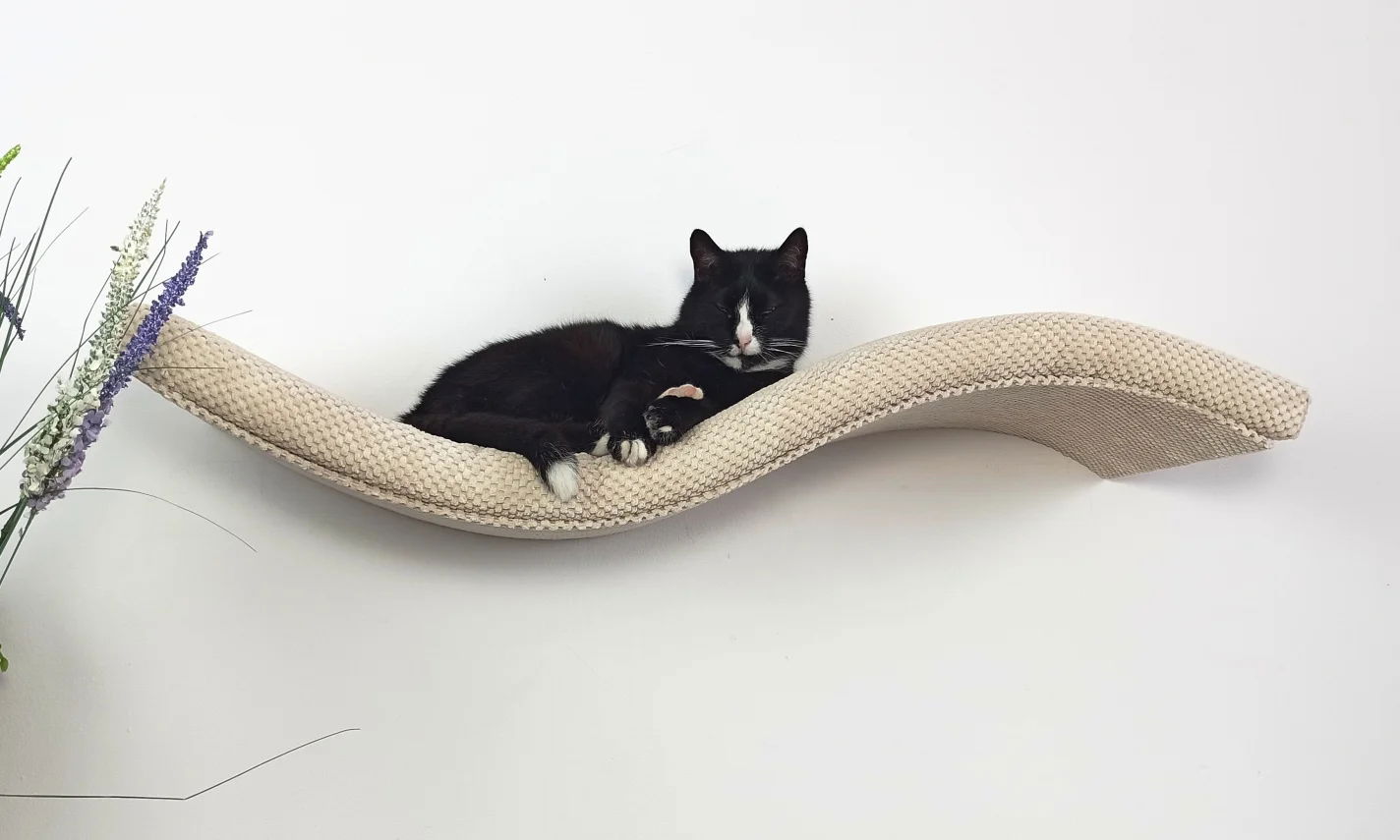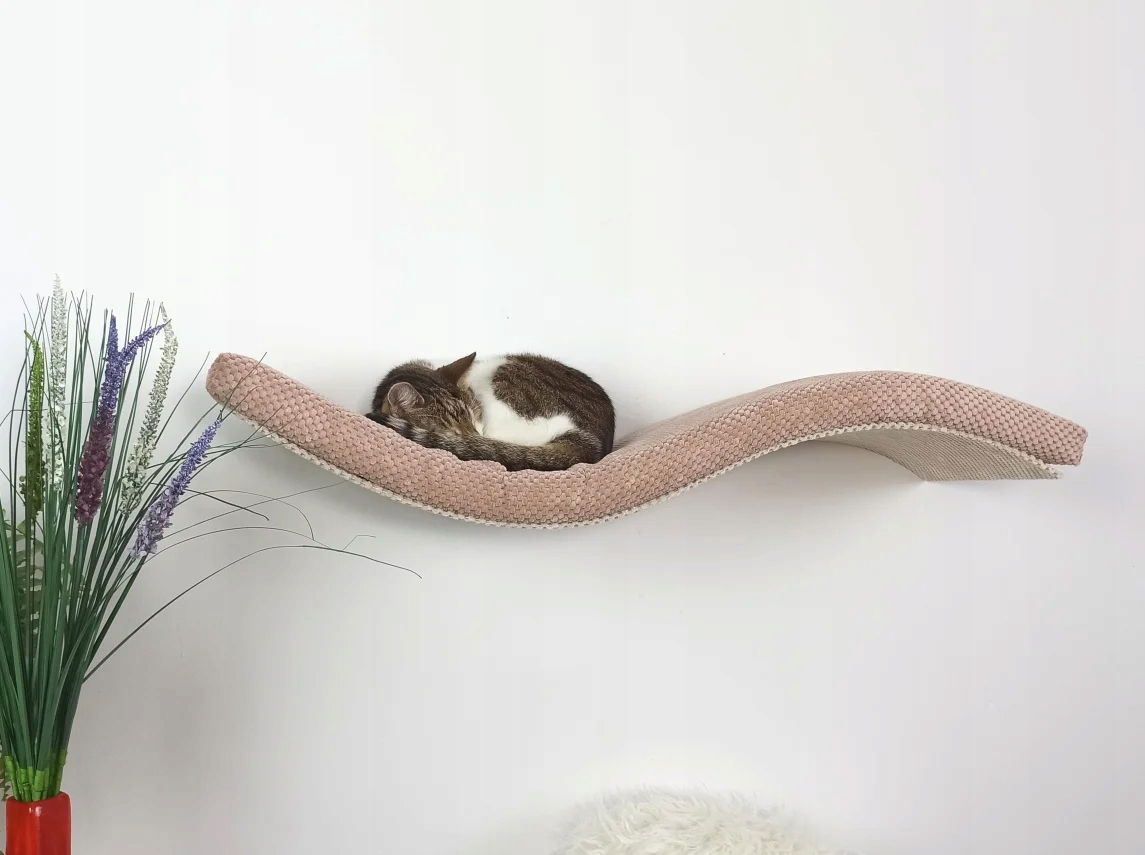 Ta designerska półka w kształcie fali to połączenie elegancji i funkcjonalności, które zachwyci zarówno Ciebie, jak i Twojego kociego przyjaciela.