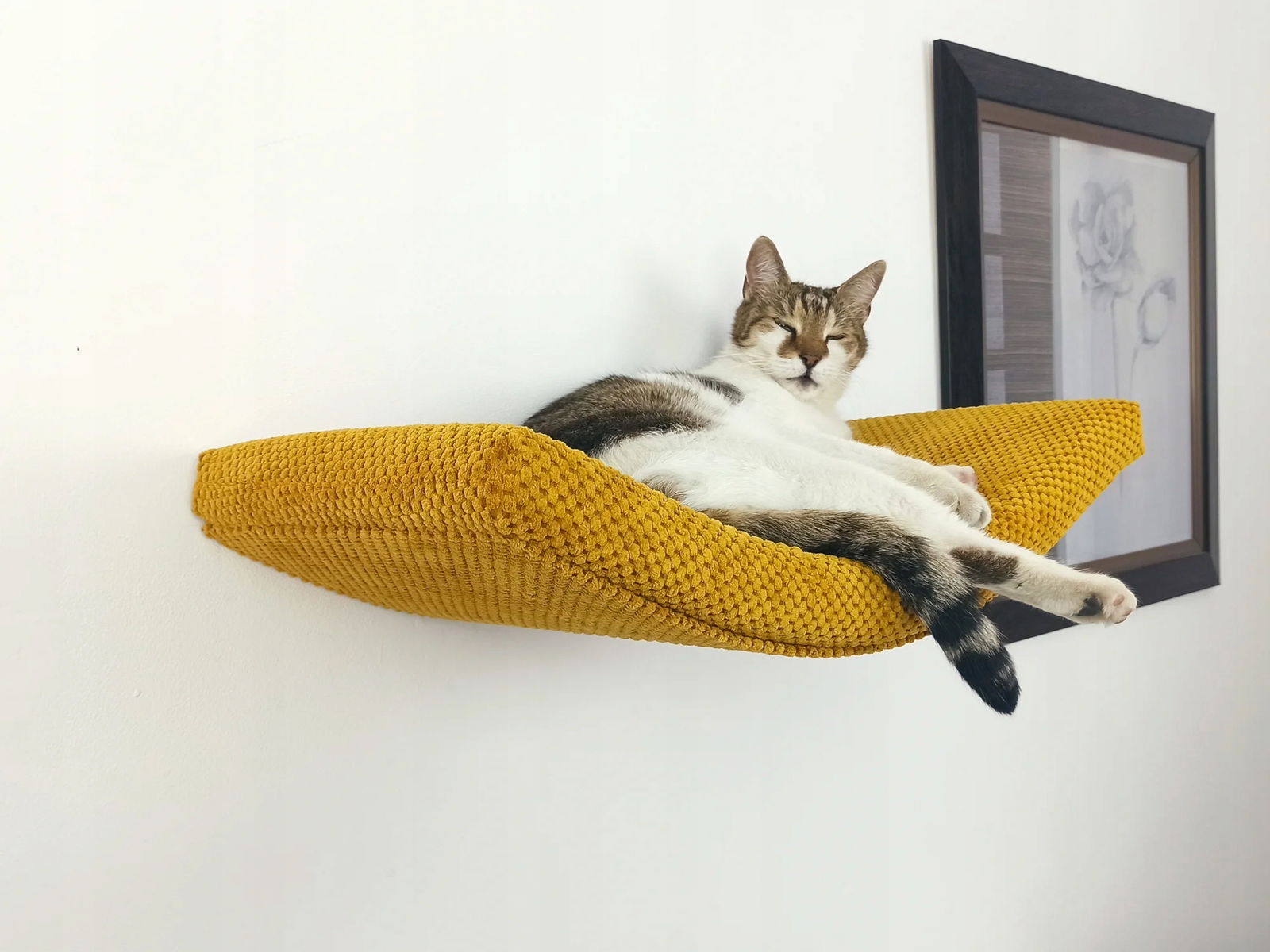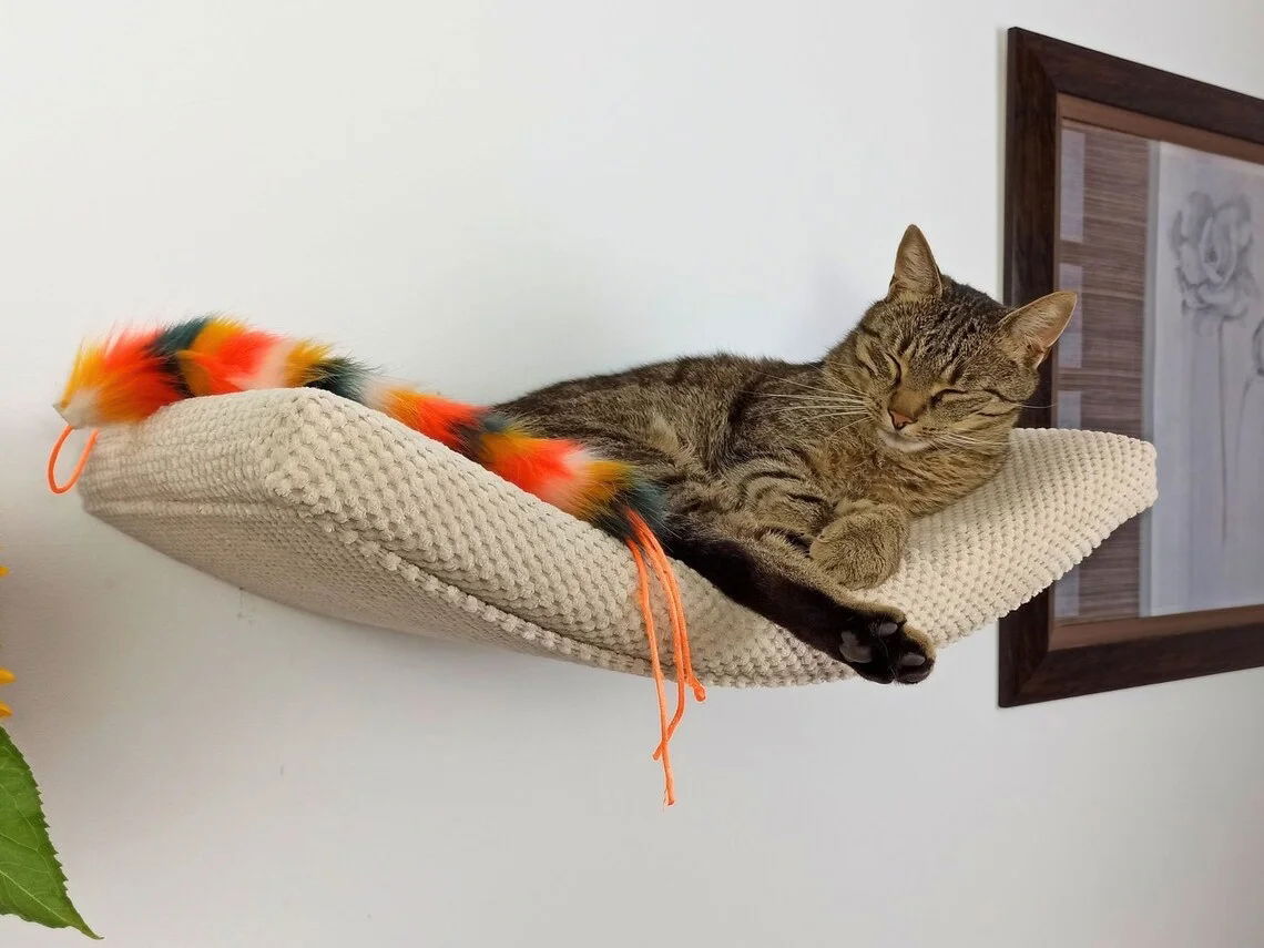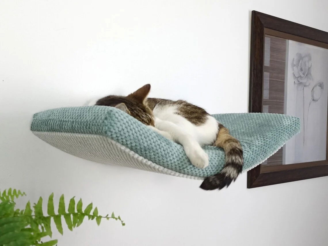 - Wygodne legowisko:Miękki i zdejmowany materac zapewnia komfortowy odpoczynek, a niewidoczne mocowanie stwarza wrażenie "pływającej" półki.