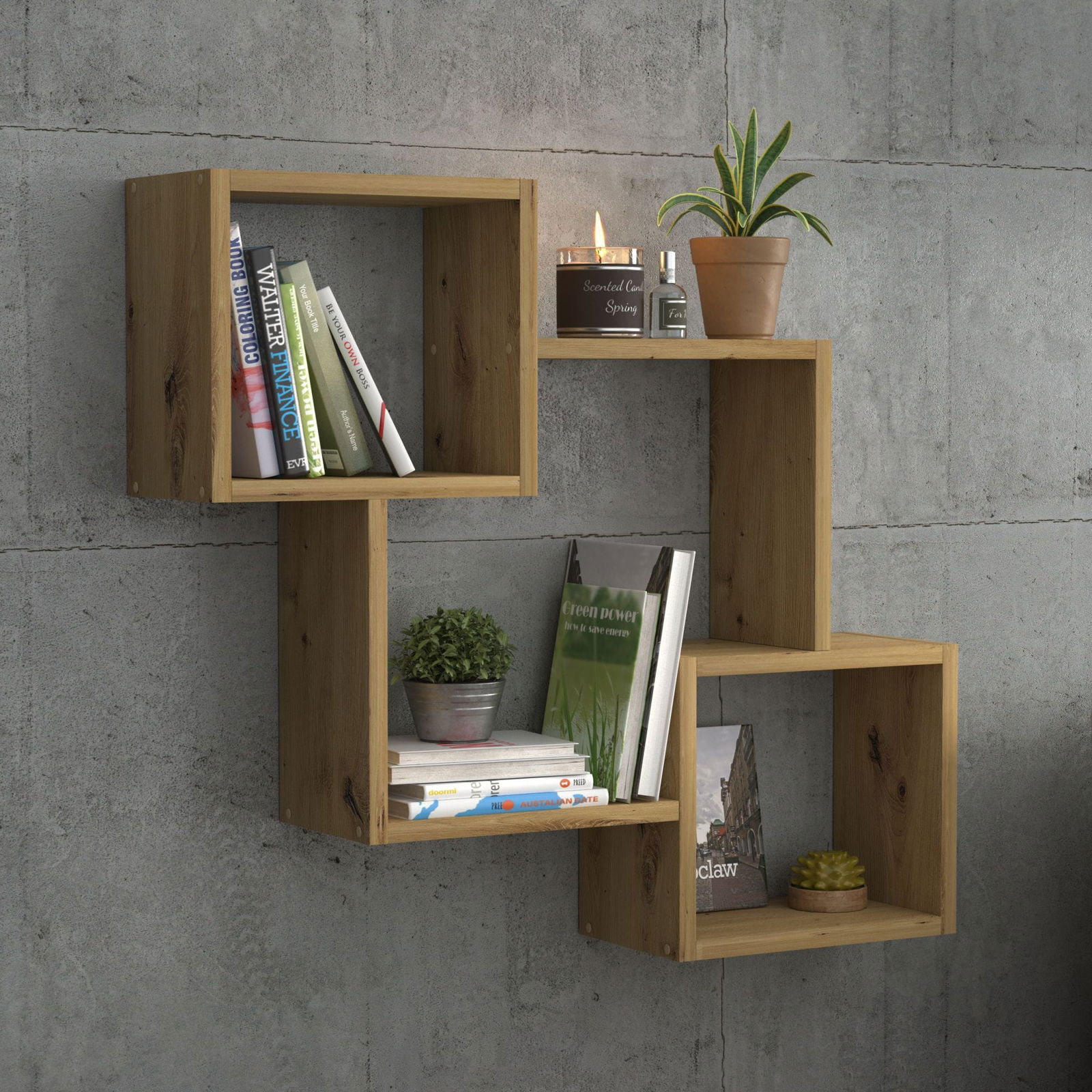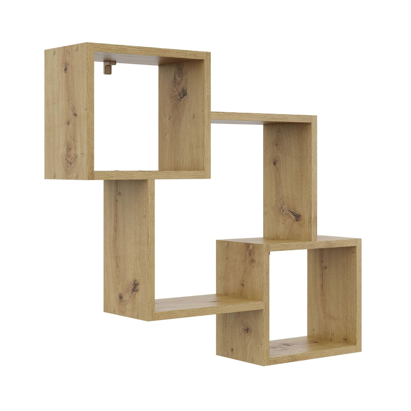 Półka ścienna, wisząca, regał, 78x18x71 cm, dąb artisan, mat. Przestronny i estetyczny regał, który idealnie sprawdzi się jako półka ścienna w salonie, kuchni, korytarzu, przedpokoju, a nawet w łazience czy w biurze. Dekoracyjne półki wiszące zapewniają wystarczająco miejsca na książki lub inne przedmioty, takie jak rośliny, ramki do zdjęć, segregatory czy elementy ozdobne.