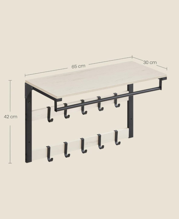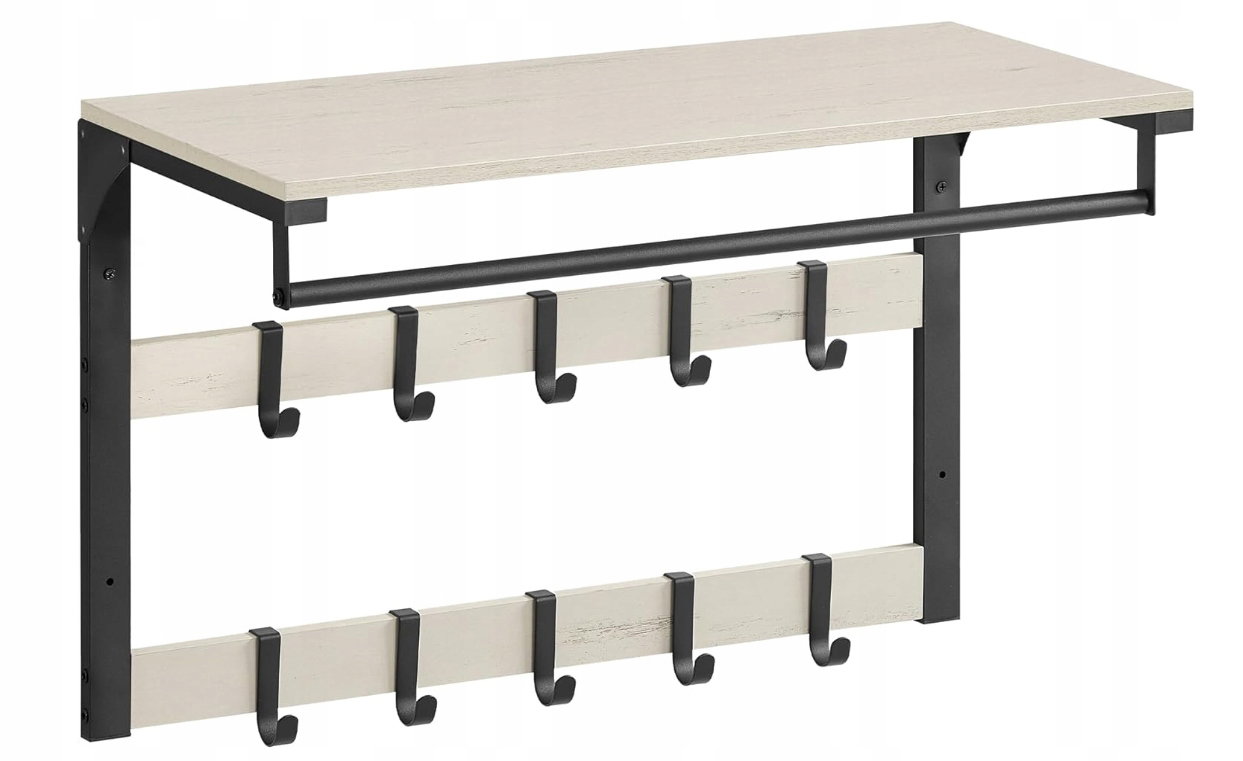 Półka ścienna z półką, z 10 hakami wymiennymi VASAGLE LCR101W03 USZKODZONY