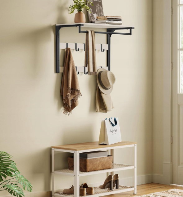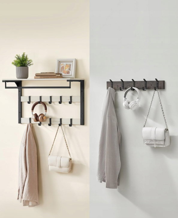 - ✴️[3 w 1] Dzięki górnej półce, wyjmowanym haczykom i drążkowi na wieszaki ten montowany na ścianie wieszak na ubrania łączy w sobie miejsce do przechowywania, wieszania ubrań i przechowywania drobnych przedmiotów w jednym